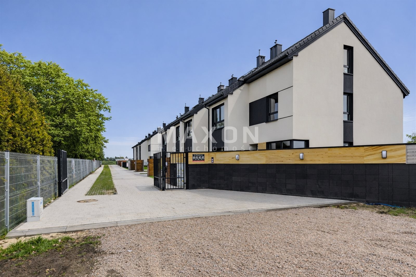 Całe osiedle 8 domów ogrodzone, z bramą na pilota, domofonem i furtką. Na eleganckim pełnym ogrodzeniu od frontu skrzynki pocztowe oraz gustowne oświetlenie. Droga wewnątrzosiedlowa oraz podjazdy wyłożone estetyczną kostką.