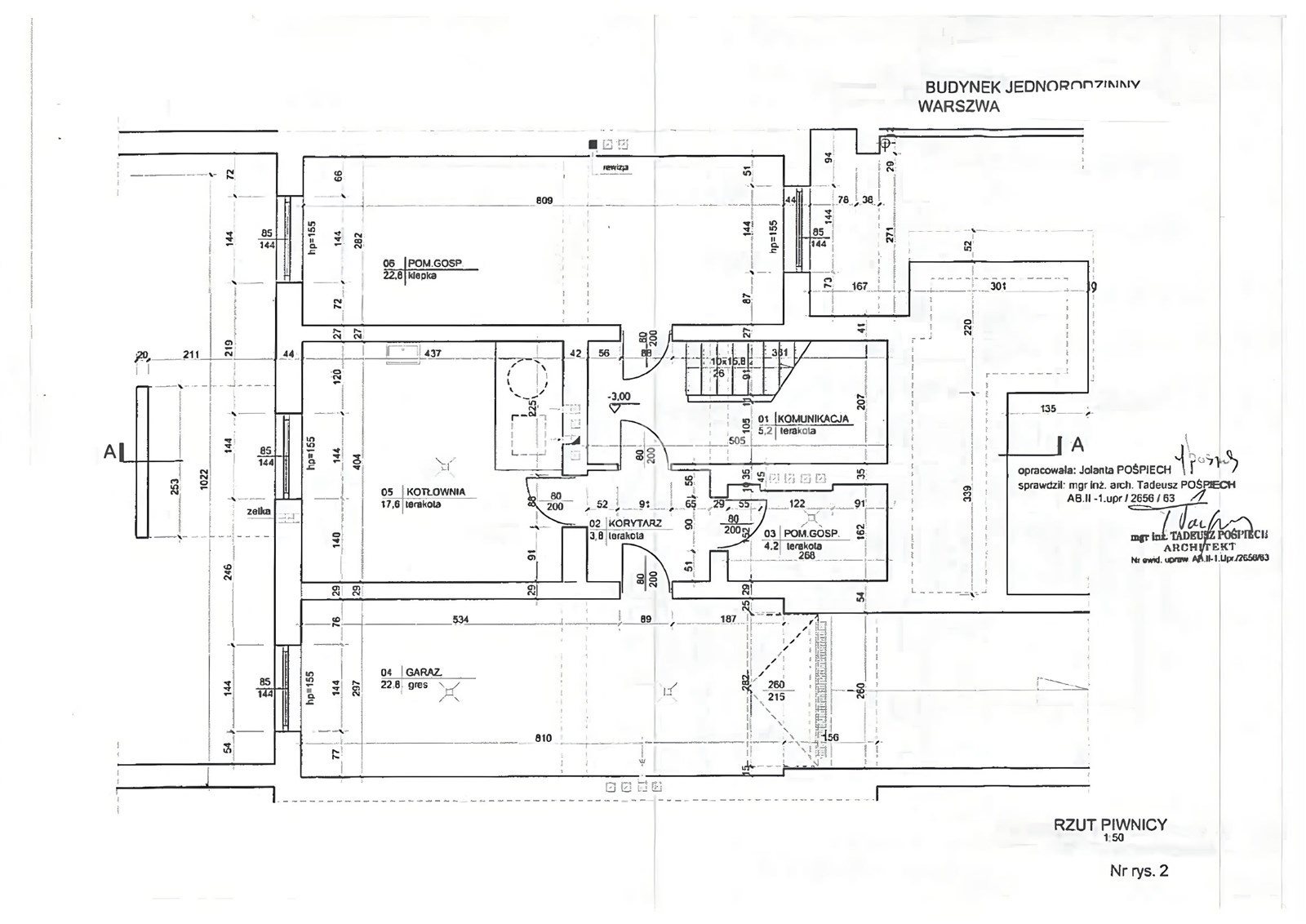 - Przyziemie: garaż, kotłownia, 2 pomieszczenia gospodarcze