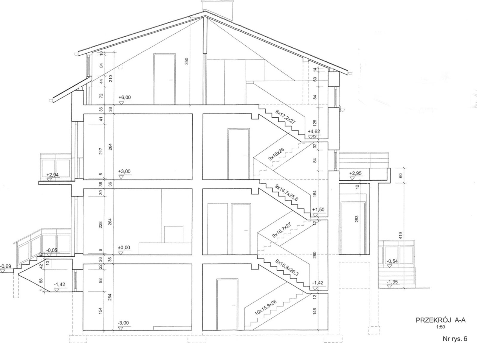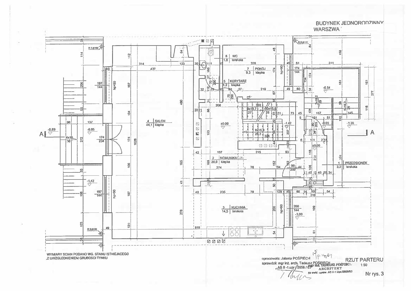 - Parter: salon 44m2, kuchnia 14,5 m2, WC