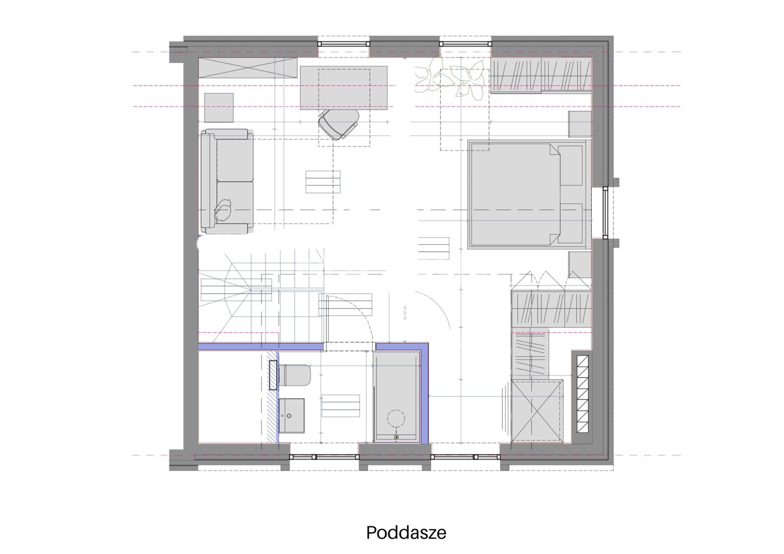Poddasze - przestronna sypialnia master z garderobą lub pokój gościnny, łazienka.