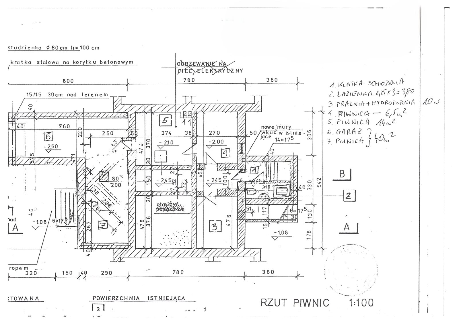 Garaż i pomieszczenia techniczno-gospodarcze w podpiwniczeniu - powierzchnia użytkowa 75 mkw.