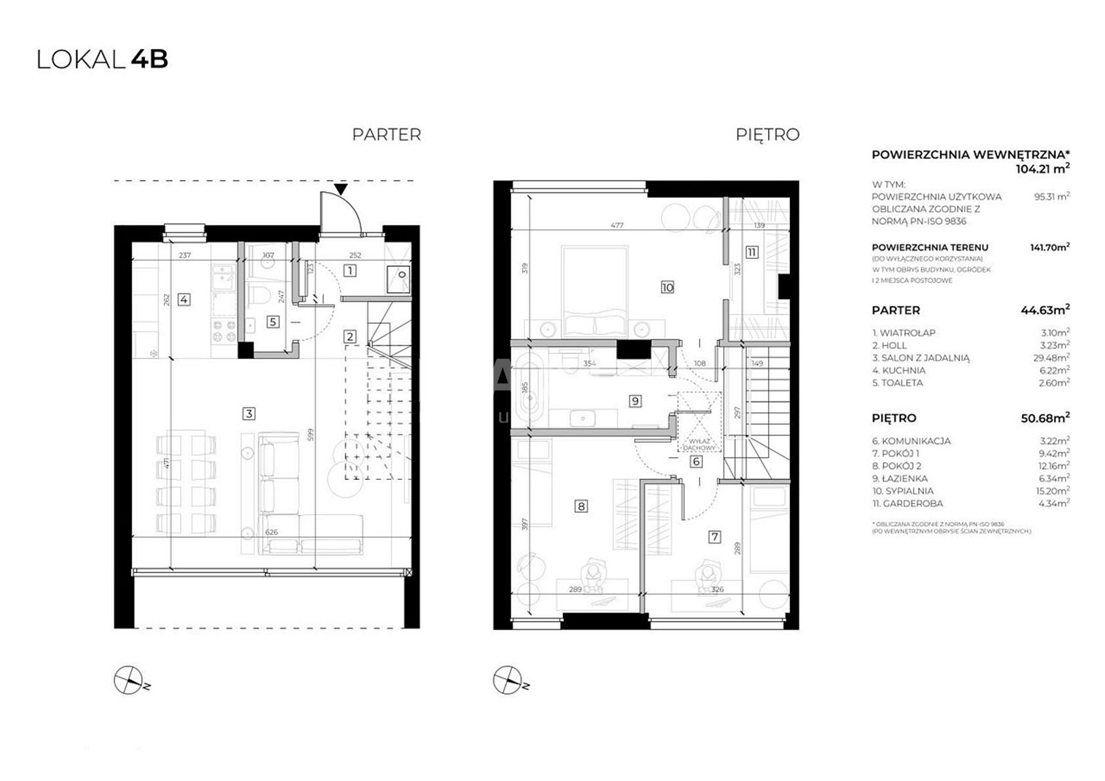 Powyższy dom ma powierzchnię całkowitą 104,21 mkw., a użytkową 95,31 mkw., usytuowany na działce o powierzchni 141,70 mkw. i składa się z :