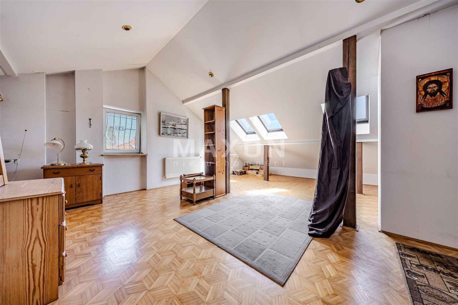 Na użytkowym poddaszu o powierzchni 70 m2 otwarta przestrzeń mieszkalna z oknami dachowymi oraz łazienka. Miejsce idealne na pokój rekreacyjny, sypialnię dzieci lub pokój zabaw.