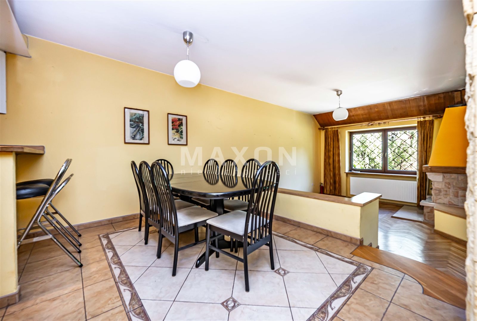 Salon z jadalnią z wyjściem do ogrodu;