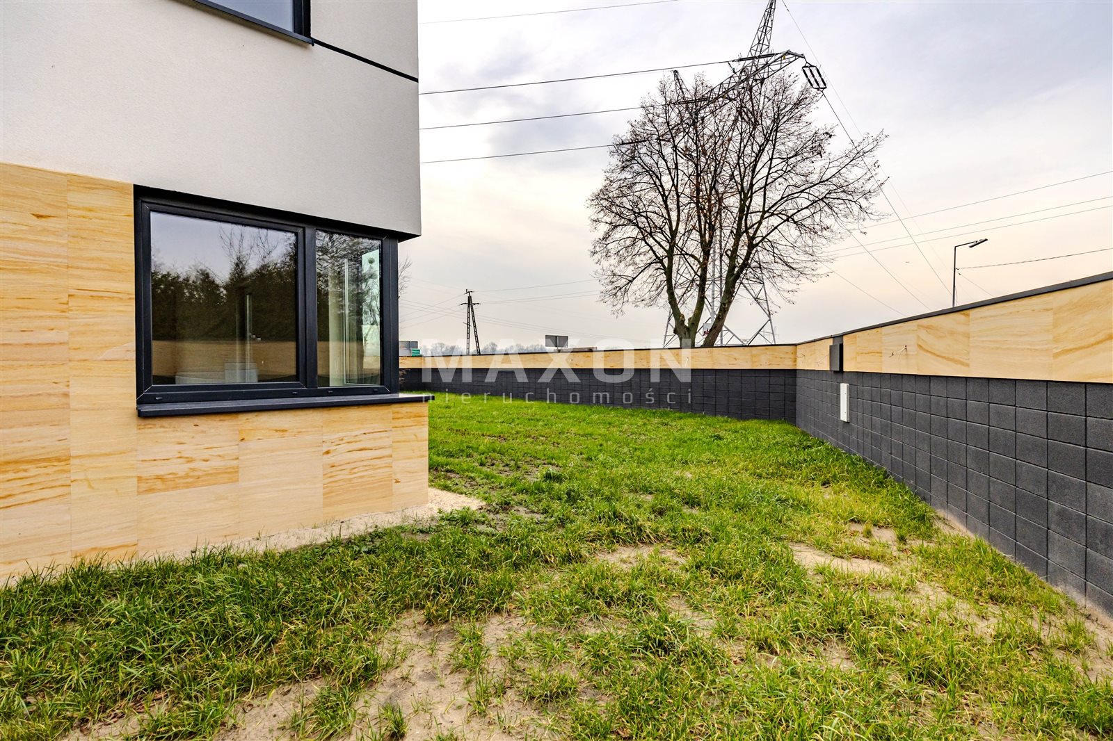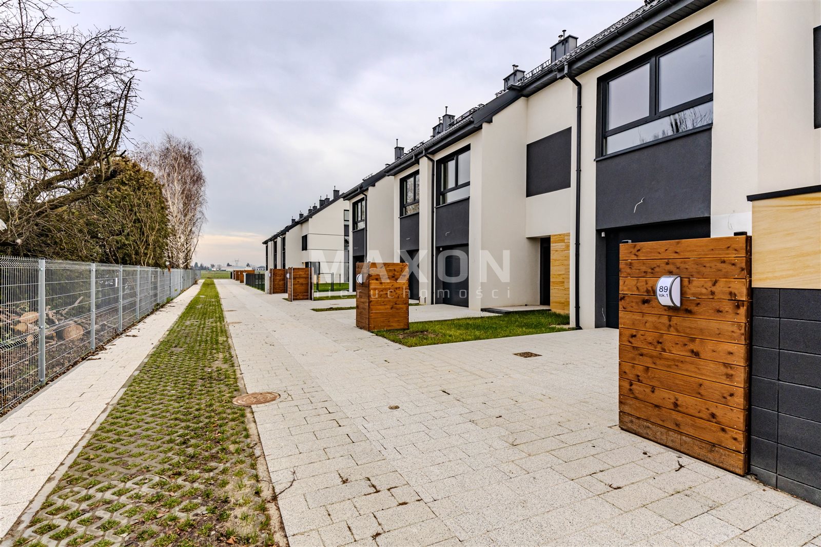 Dom posadowiony na bardzo dużej, ponad 500 metrowej działce o regularnym kształcie. Przed domem podjazd do zaparkowania dodatkowego samochodu, oraz wiata śmietnikowa. Działka ogrodzona z dodatkową furtką na ogród od przodu domu. Od ogrodu widok na otwartą przestrzeń, która nie zostanie już zabudowana.
