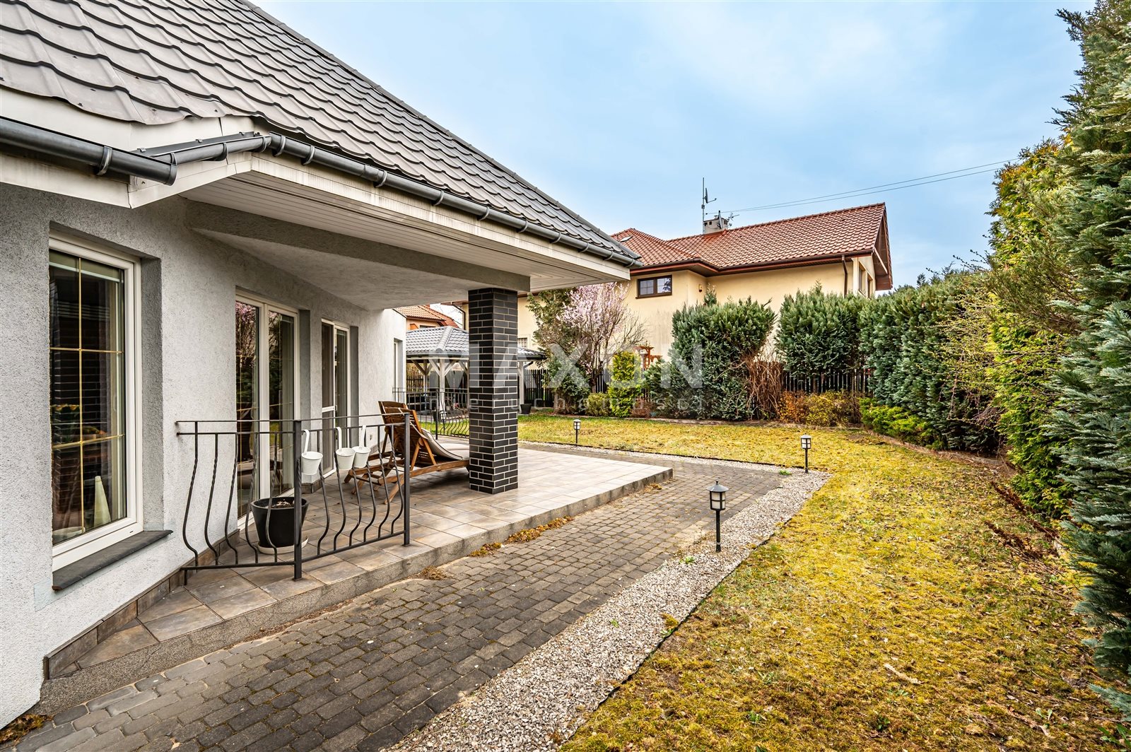 Działka i Ogród pow. działki to 600mkw - pięknie urządzona z zadbana z zamontowanym automatycznym nawadnianiem. Całą działkę okala zadbana roślinność. Ekspozycja Tarasu z widokiem na zieleń. Ogrodzenie działki częściowo murowane z klinkieru, brama wjazdowa i garażowa sterowana automatycznie na pilota. Na terenie części wjazdowej kostka. Teren Ogrodzony.