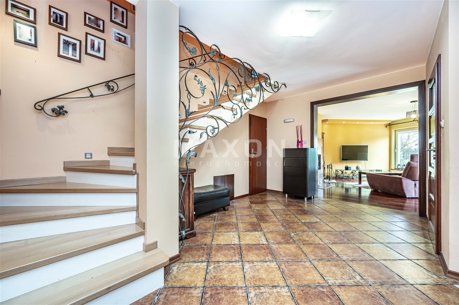 - Schody drewniane z ręcznie kutą barierką