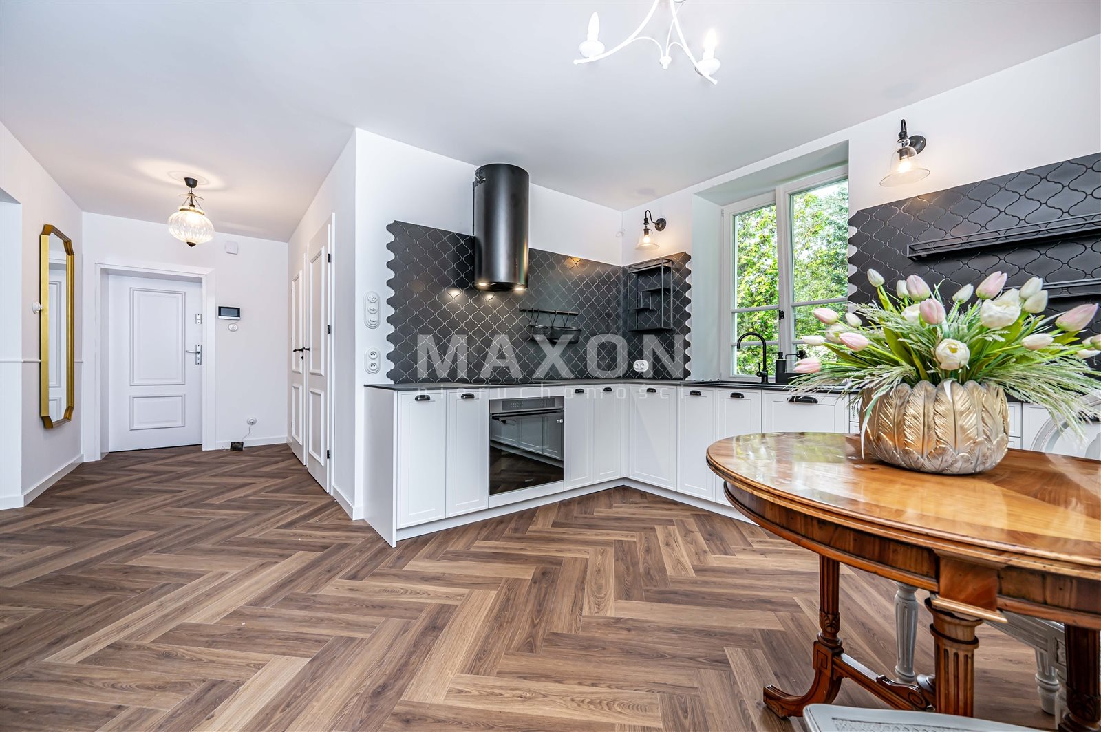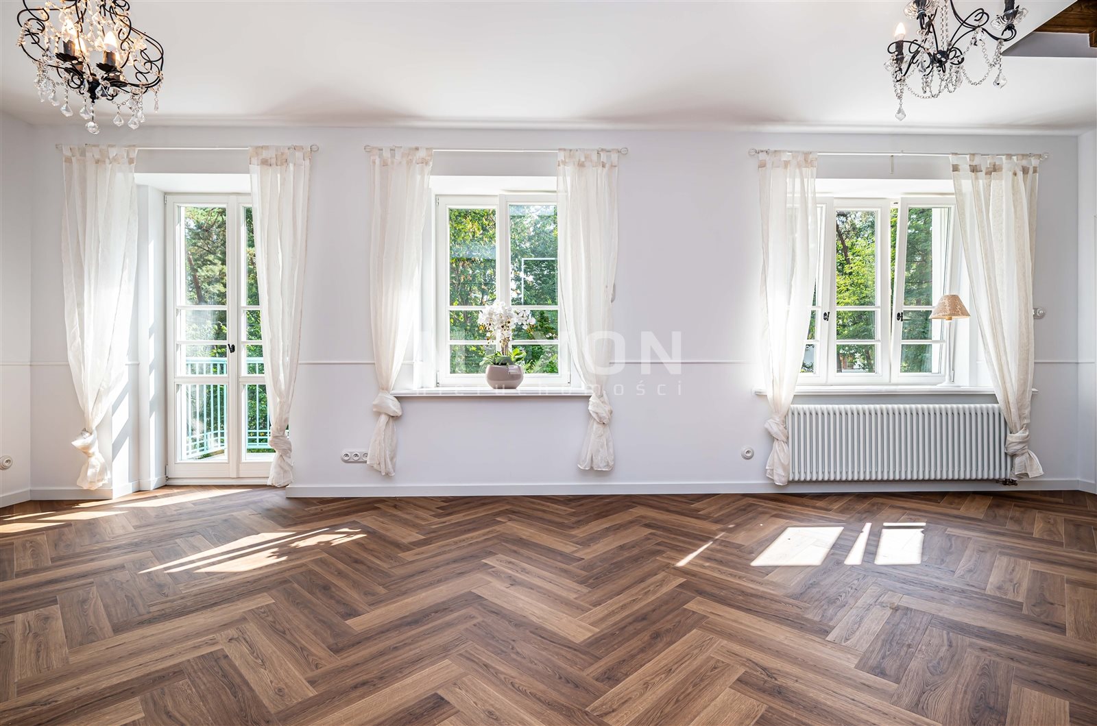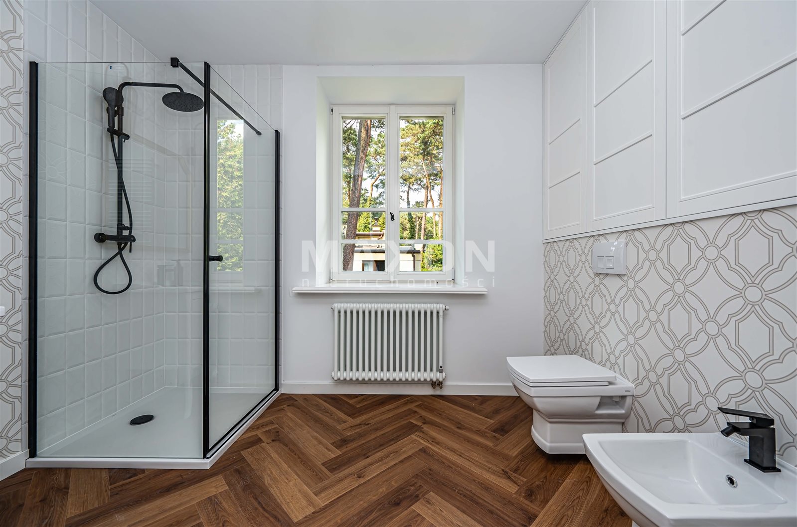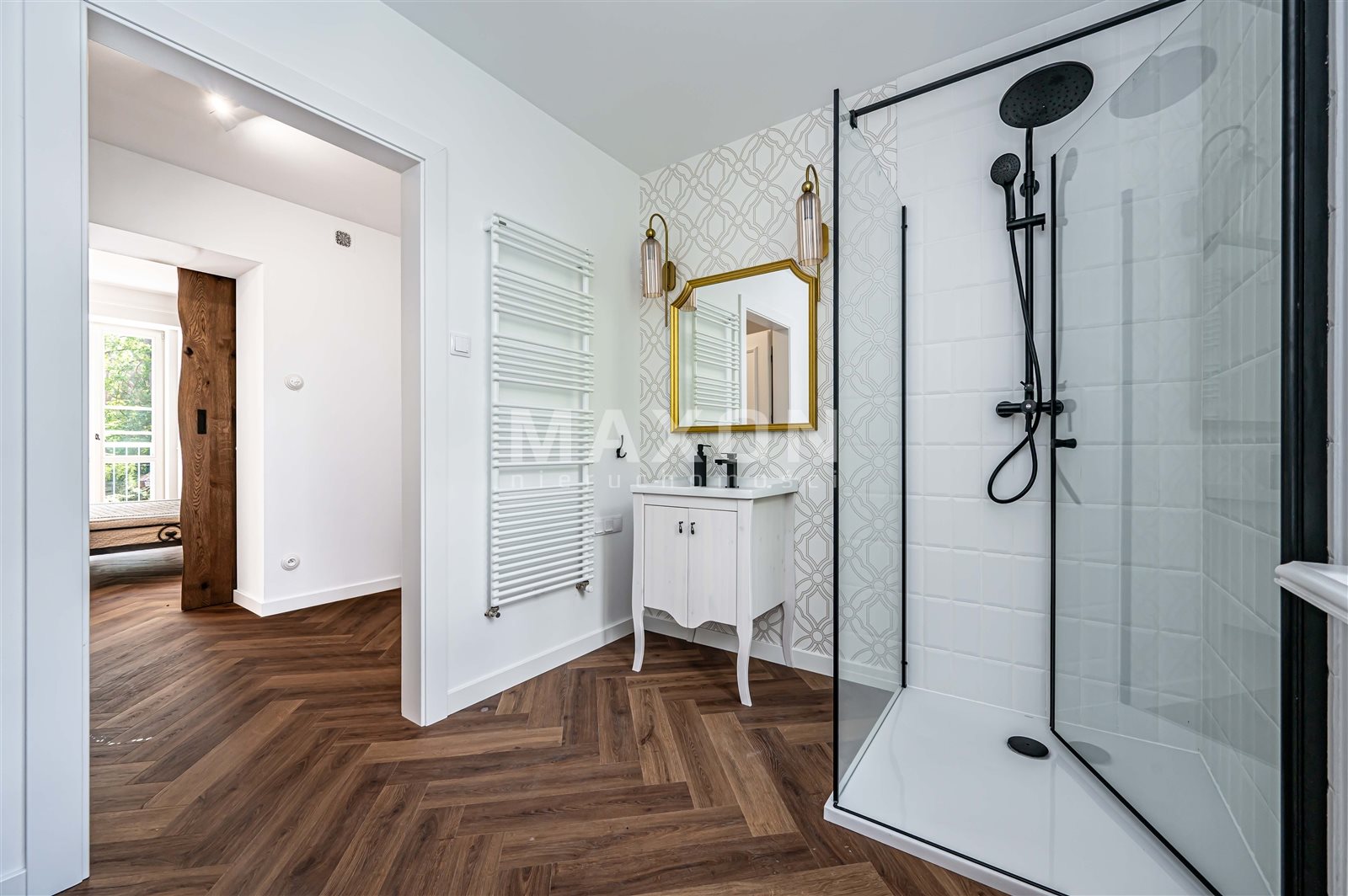 Apartament znajduje się w kameralnym budynku o charakterze willowej kamienicy, wpisującym się w elegancki styl Podkowy Leśnej i jest ulokowany na ostatniej i przedostatniej kondygnacji, co gwarantuje swobodę i brak sąsiadów nad głową – ceniony atut, którego często brakuje w mieszkaniach wielopoziomowych.