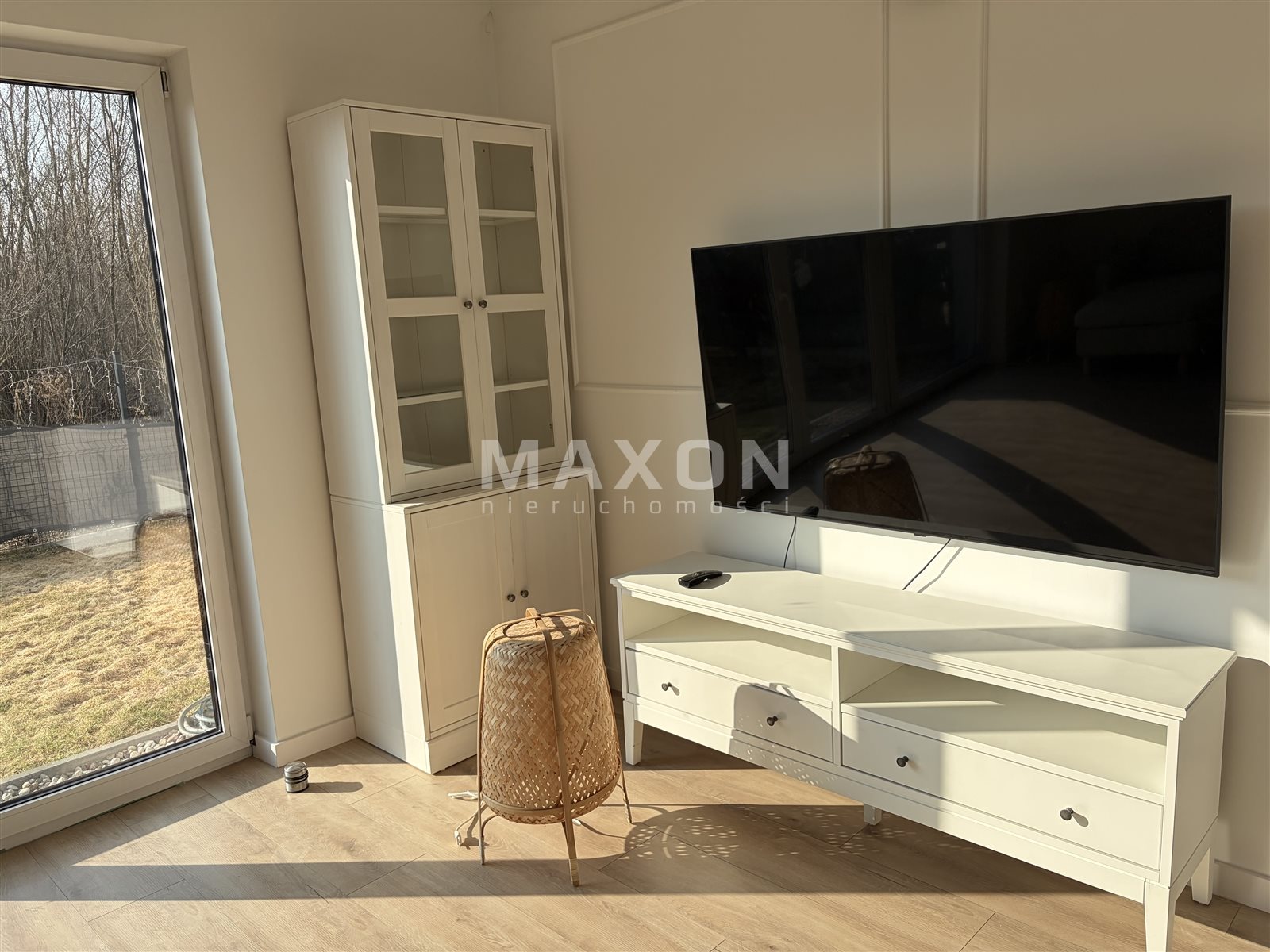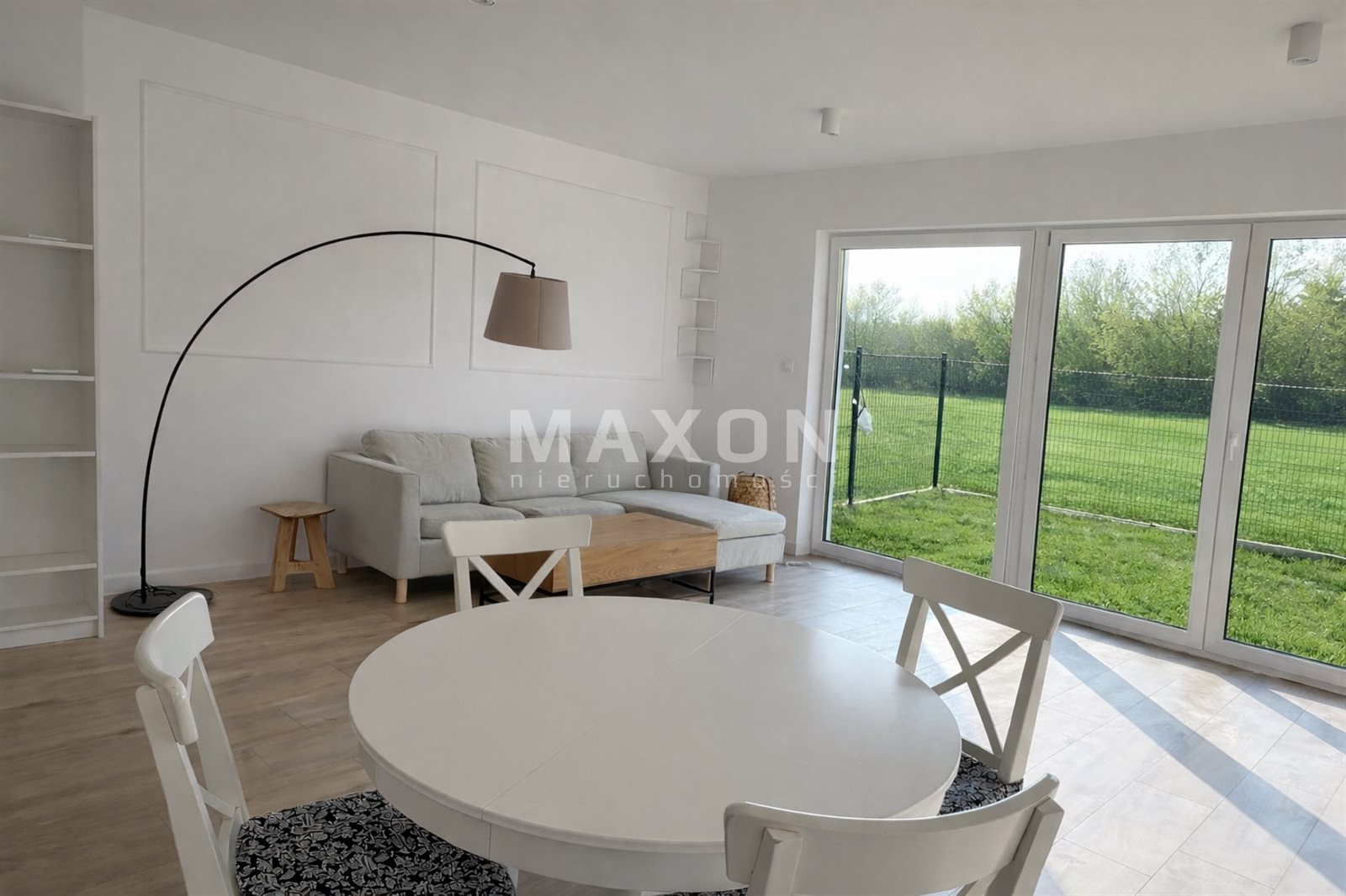 Jasny salon z wyjściem na taras oraz do ogrodu