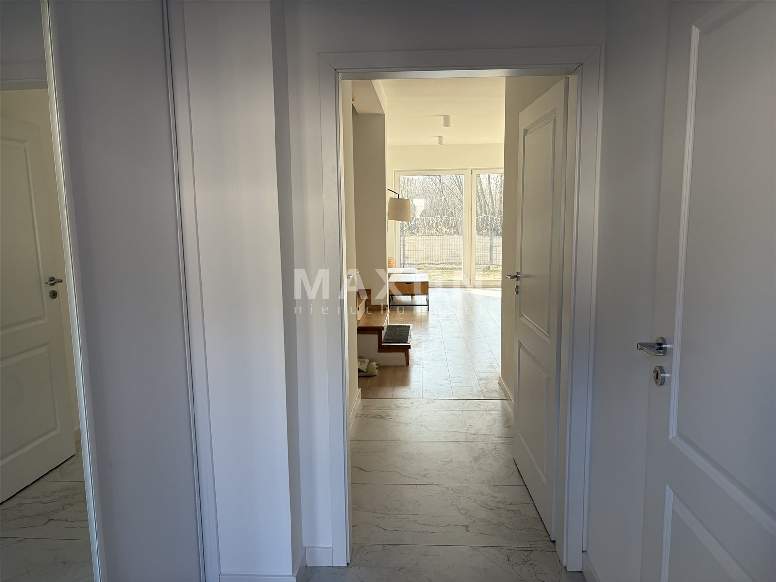 Nieruchomość znajduje się przy spokojnej, kameralnej ulicy, w otoczeniu zabudowy jednorodzinnej. Lokalizacja zapewnia szybki dojazd do Warszawy oraz wygodny dostęp do trasy S8.