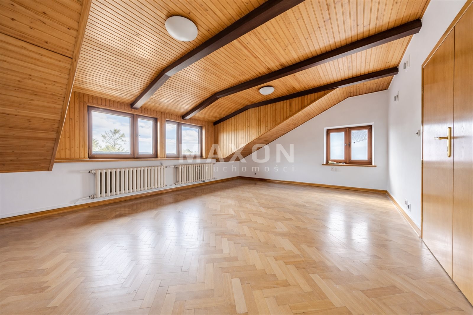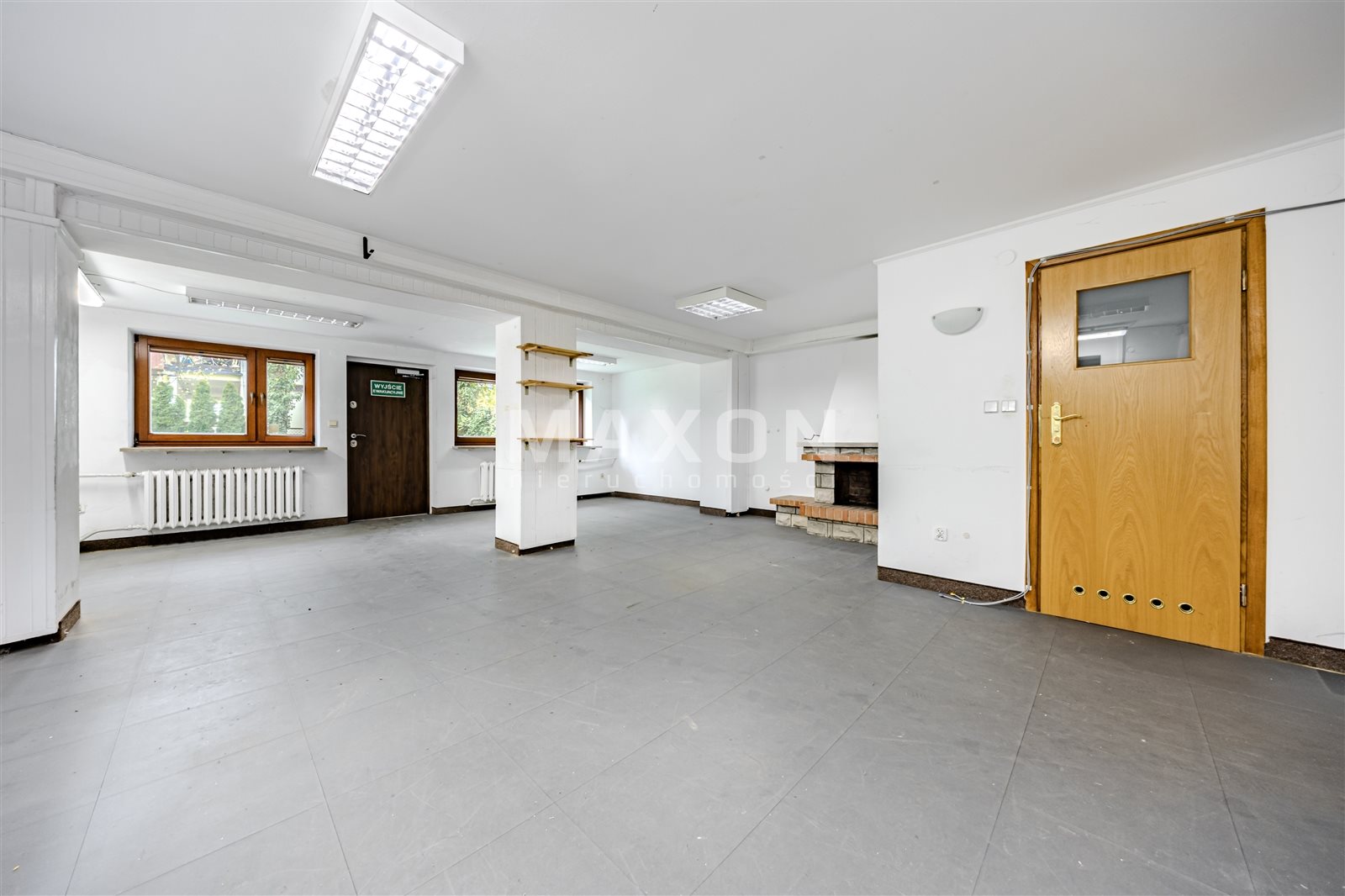 - pokój z kominkiem (44,7 mkw) – idealny jako dodatkowy salon, gabinet lub przestrzeń spotkań z wyjściem do ogrodu,