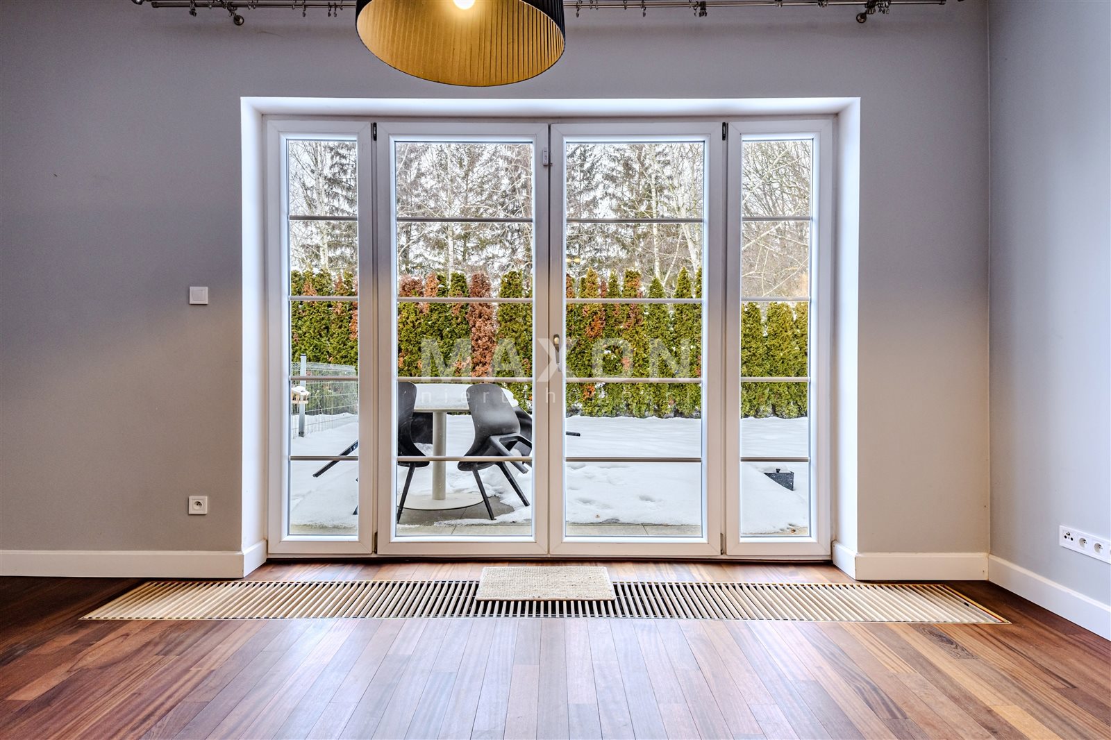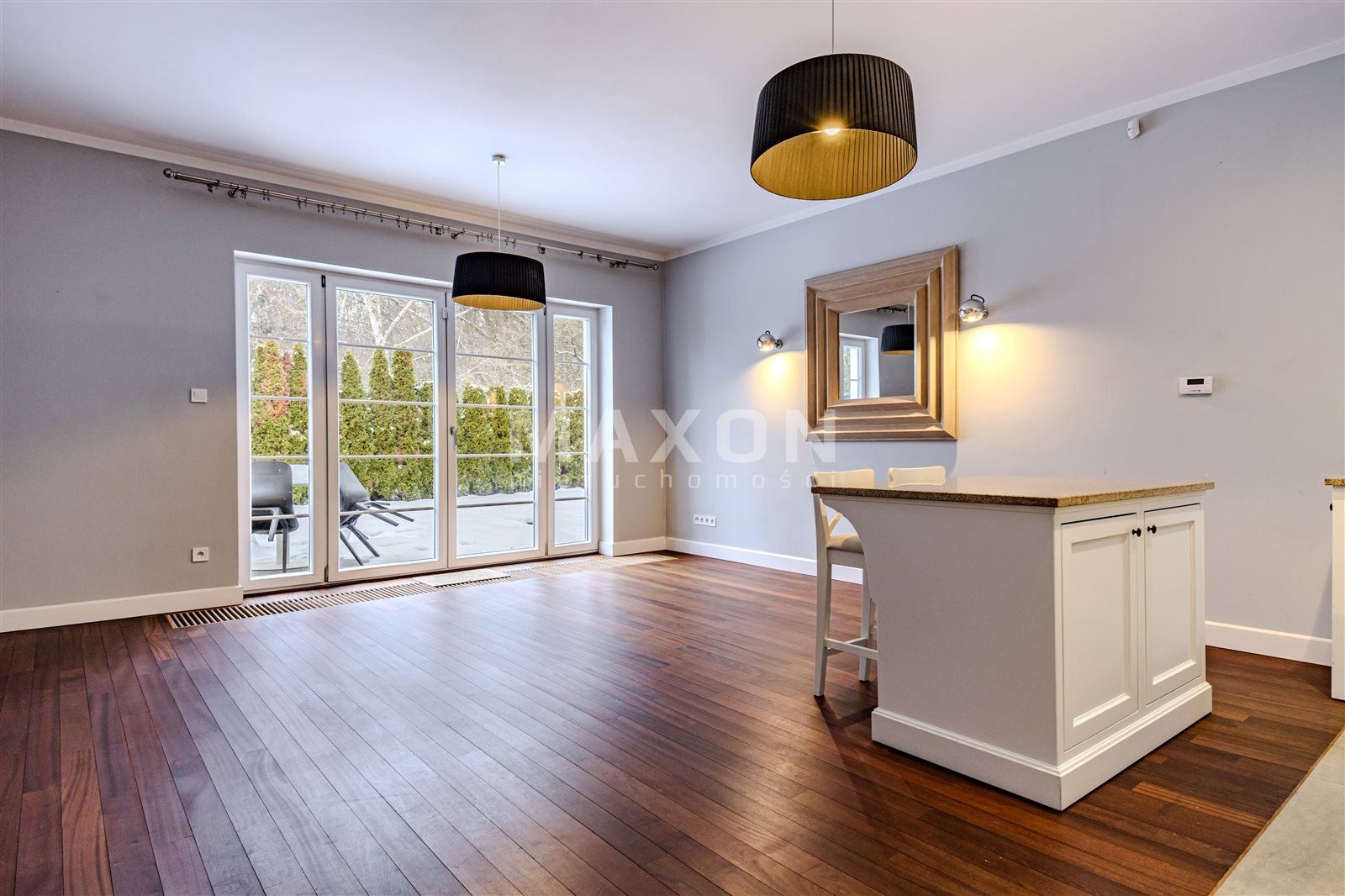 - salon z wyjściem do prywatnego ogrodu