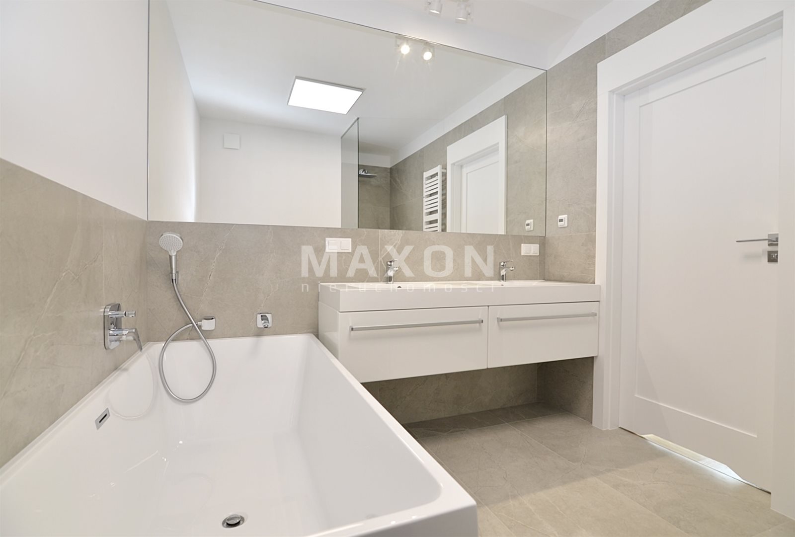 - Łazienki z pełnym wyposażeniem: grzejnik drabinkowy, prysznic, wanna, WC i umywalka