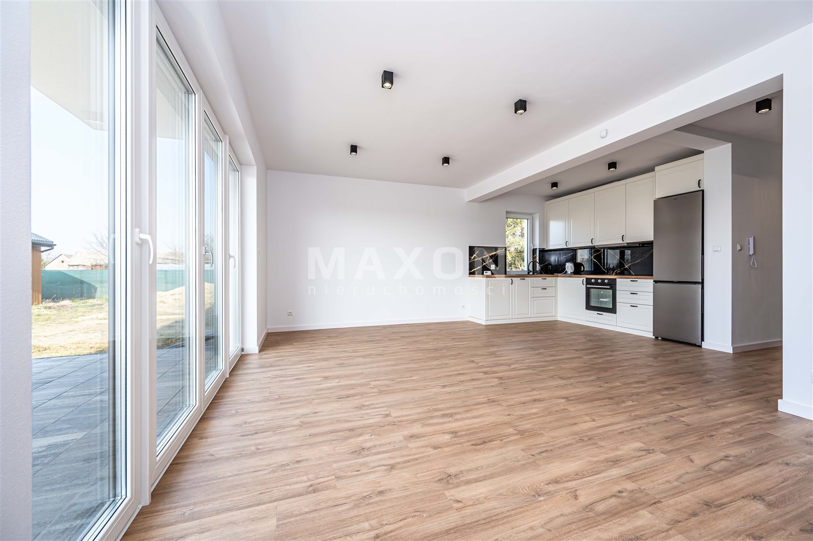 - salon z jadalnią i wyjściem na taras oraz ogród