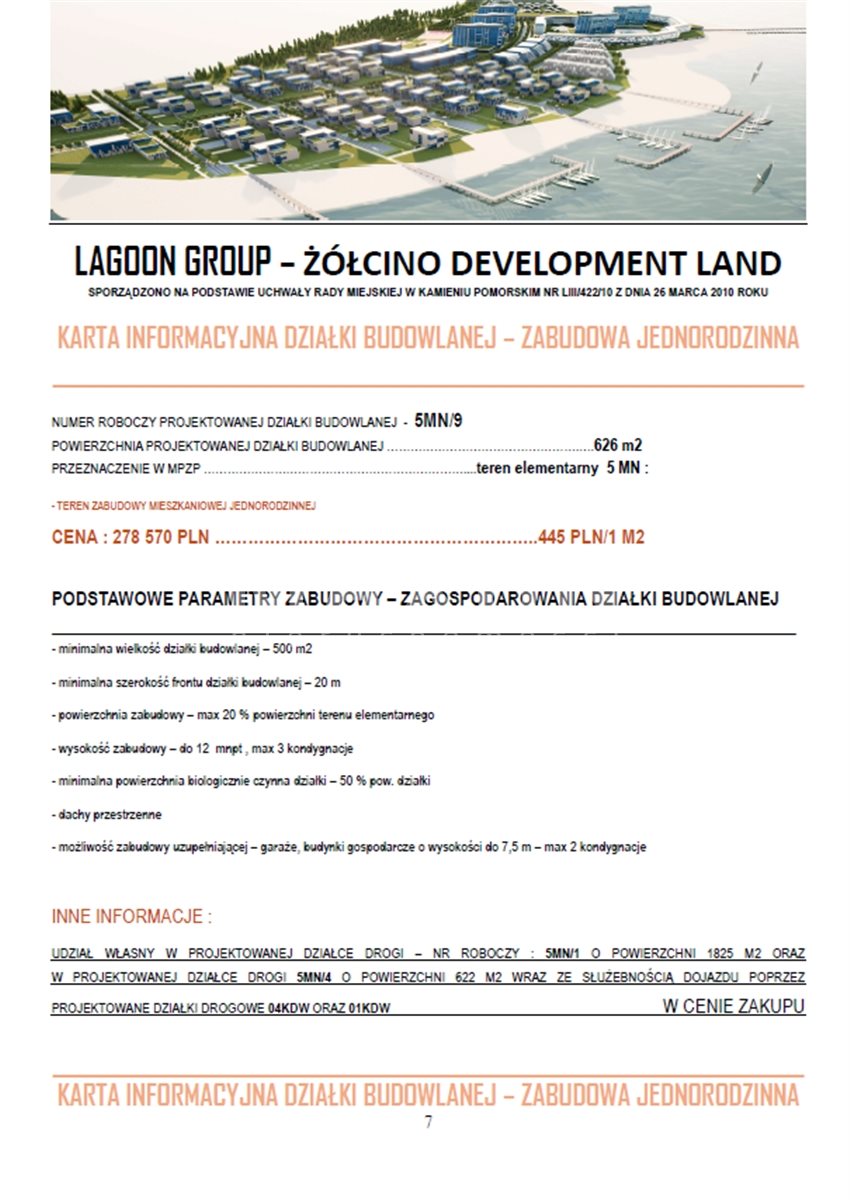 - Informacja dodatkowa: udział własny w projektowanej działce drogi - nr roboczy 5MN/1 o powierzchni 1 825 mkw. oraz w projektowanej działce drogi 5MN/4 o powierzchni 622 mkw. wraz ze służebnością dojazdu poprzez projektowaną działkę drogową 04KDW.