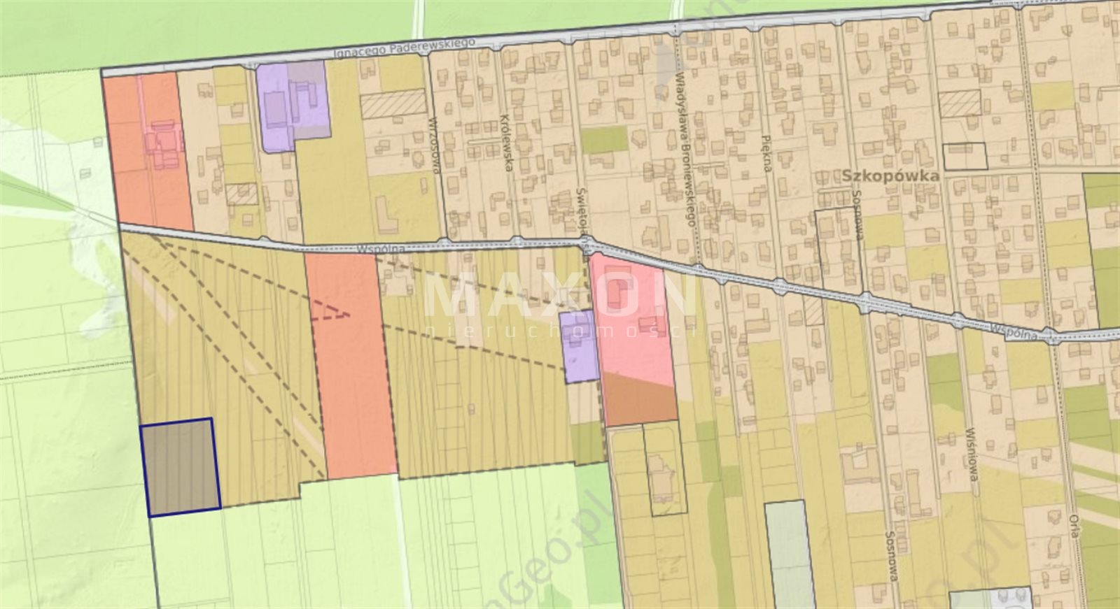 - obszar objęty planem ogólnym z przeznaczeniem pod zabudowę jednorodzinną.