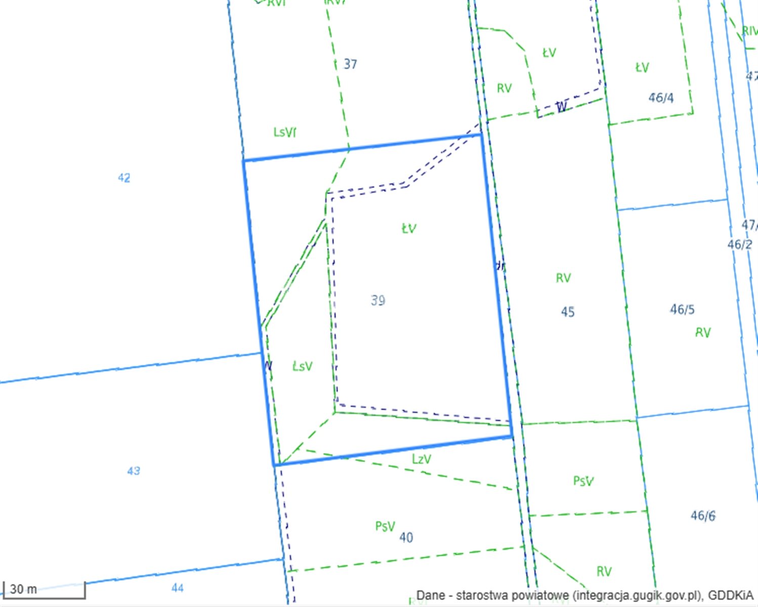 - Klasy gleby: ŁV, W-ŁV, PsV, LsV, LsVI, LzV;