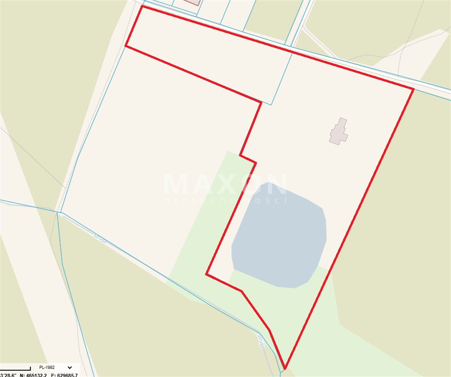Działka o powierzchni 30 000 m2 posiada własne jezioro.