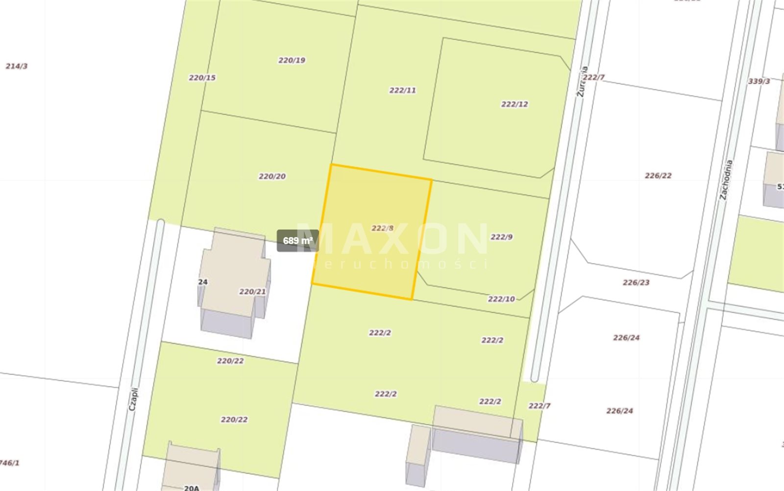 - działka nr I 689 mkw. - możliwa zabudowa jednorodzinna, bliźniak i usługi nieuciążliwe,