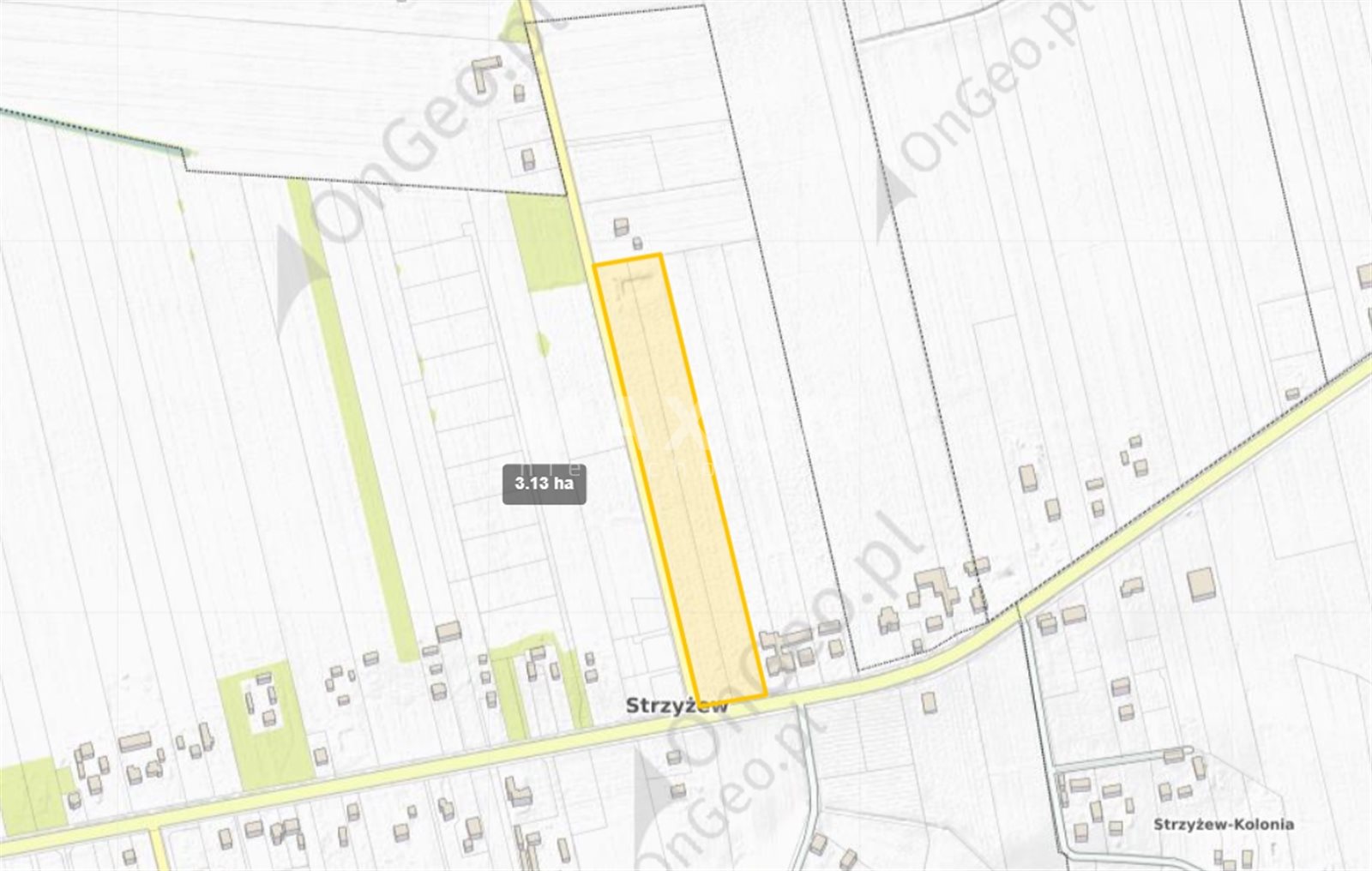 Strzyżew, gmina Kampinos, blisko Puszczy Kampinoskiej – Teren o powierzchni 31 291 mkw. z możliwością podziału na działki budowlane, każda z dostępem do drogi asfaltowej. Klimatyczne działki pod zabudowę wolnostojącą w pobliżu Puszczy Kampinoskiej w pobliżu rzeki Utrata i drogi wojewódzkiej DW580 Warszawa – Leszno – Sochaczew. Atrakcyjne miejsce dla osób szukających lokalizacji na dom rodzinny w ciszy, blisko natury z dobrym dojazdem i sąsiedztwem terenów leśnych. Teren jest położony w zachodniej części gminy Kampinos, wśród zabudowy jednorodzinnej i zagrodowej, 2 km od Żelazowej Woli, na skraju wsi i w odległości około 3 km od Puszczy Kampinoskiej i 1 km od granicy strefy ochronnej parku narodowego. Do granicy Warszawy jest około 37 km.