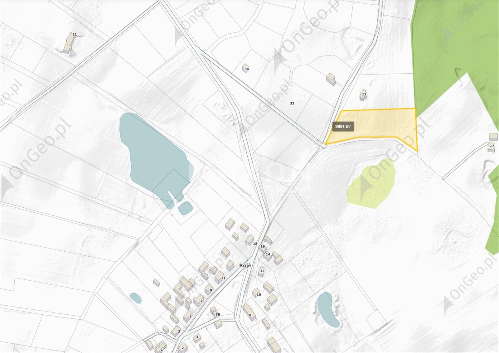 - Minimalna powierzchnia działki: 3 000 mkw. (możliwość wydzielenia trzech działek budowlanych),