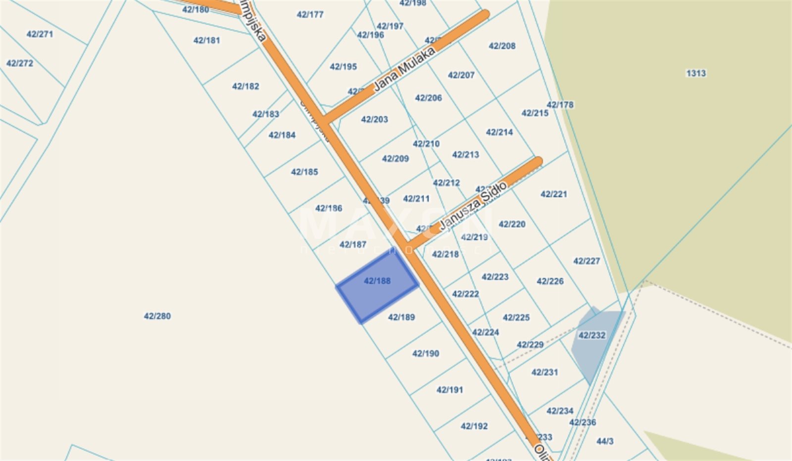 - Dojazd: droga gminna,