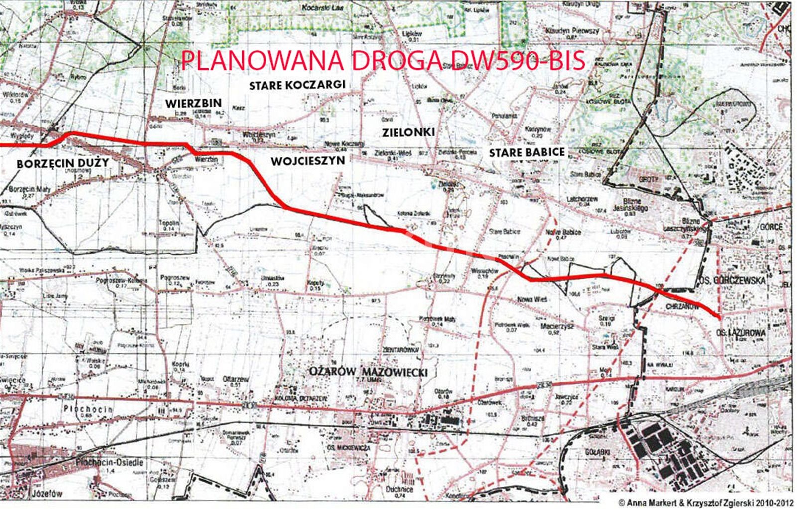 Południowa granica terenu przylega do projektowanej drogi wojewódzkiej DW580-BIS (planowanej, nowej trasy komunikacyjnej równoległej do istniejącej Drogi Wojewódzkiej nr 580 (DW 580), która ma odciążyć region zachodniego Mazowsza, łącząc Warszawę (od Bemowa, przez Stare Babice, Ożarów Mazowiecki, Błonie) z Sochaczewem. Warszawska-BIS ma być nową, dwujezdniową trasą o wyższych parametrach (klasa G) biegnącą obok istniejącej DW 580, tworząc modernizację i rozbudowę komunikacji w tym korytarzu, z uwzględnieniem np. wydzielonych pasów dla transportu publicznego (autobusów).