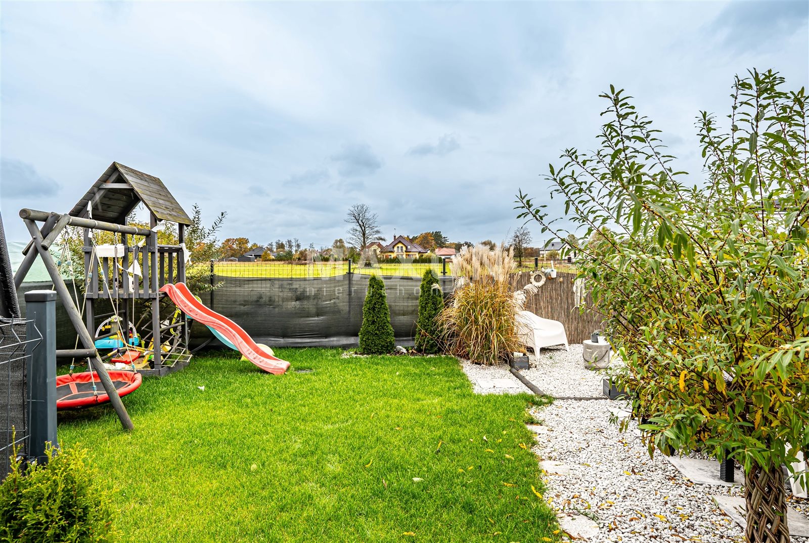 Mieszkanie o powierzchni użytkowej 109 mkw. z przynależną i zagospodarowaną działką 400 mkw. z placem zabaw dla dzieci, zaaranżowaną w minimalistycznym stylu i pięknie utrzymaną i ciekawą roślinnością, która sprzyja głębokiemu relaksowi.