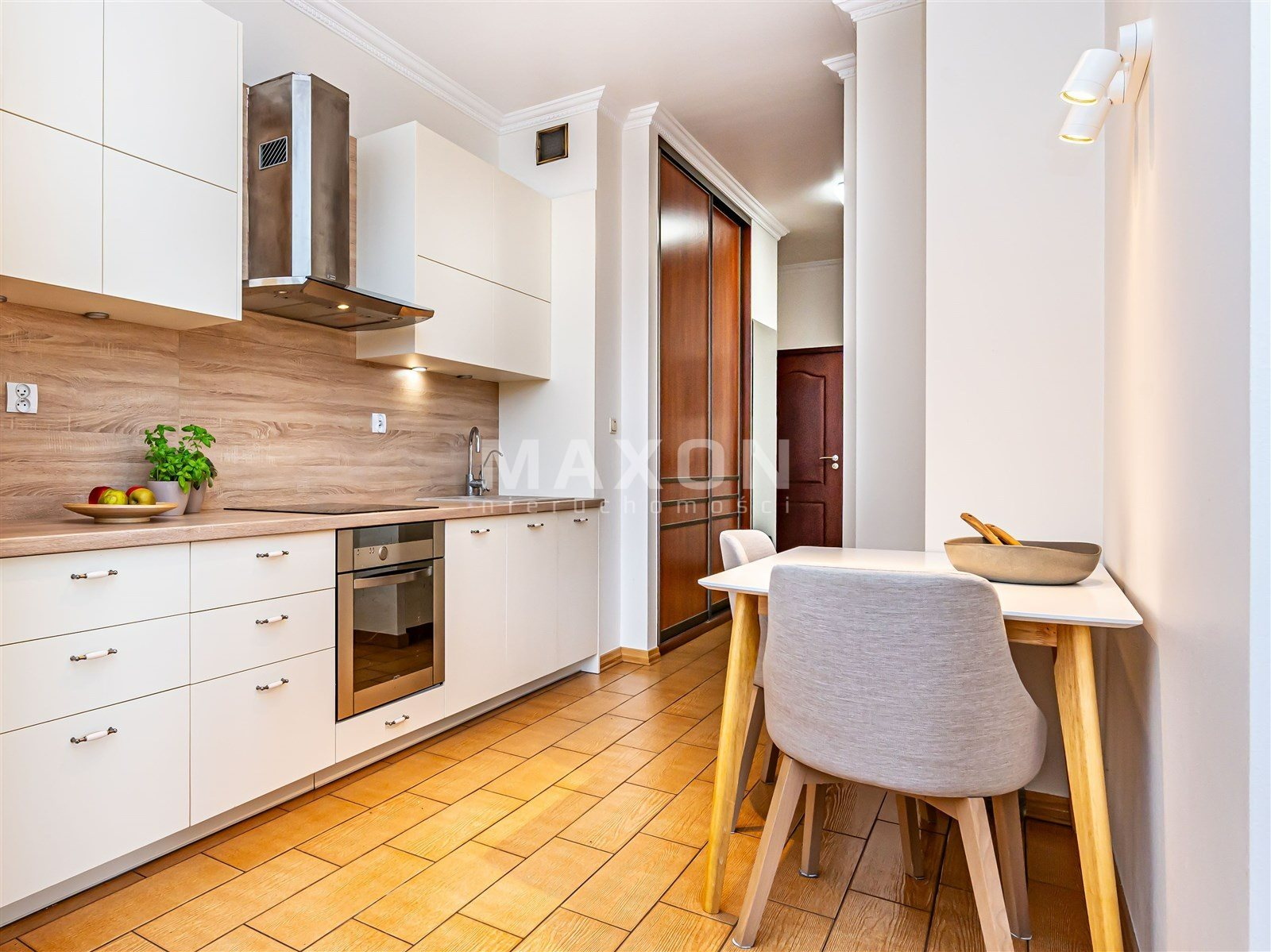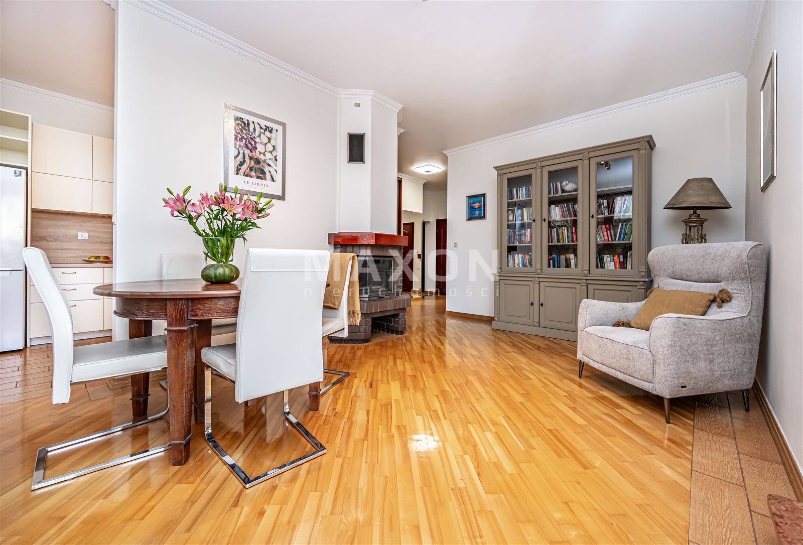 Zabudowa stała, meble kuchenne jak i sprzęty są bardzo dobrze utrzymane. Ogromne, robione na zamówienie szafy z drzwiami przesuwnymi, zapewniają bardzo dużą powierzchnię do przechowywania. Na podłodze parkiet jesionowy i gres. Gotowe do wprowadzenia.