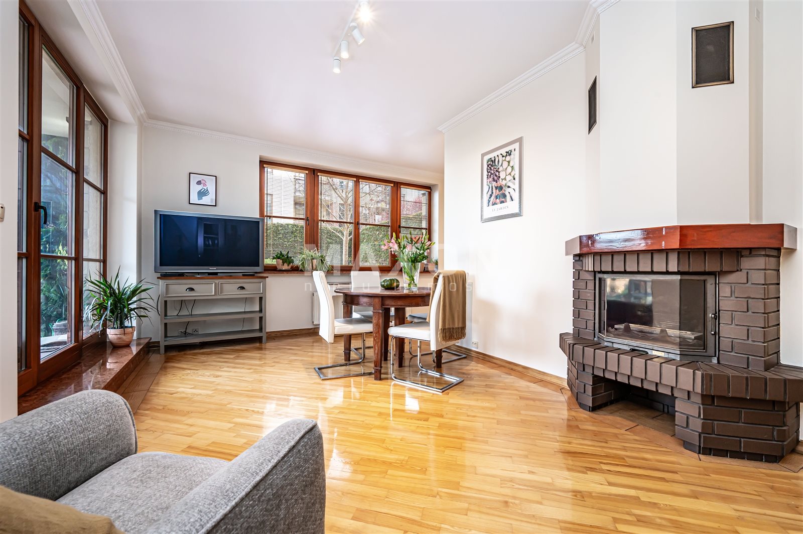 - salon z nadającym mu domowego charakteru kominkiem (22 mkw.), ,