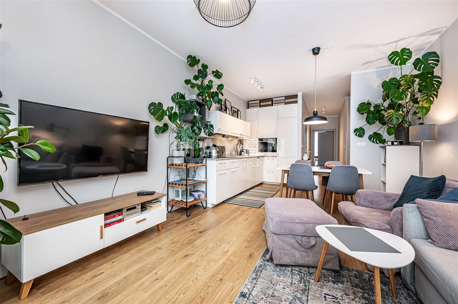 Dzięki przemyślanej aranżacji przestrzeni, mieszkanie cieszy się dużą ilością naturalnego światła, które sprawia, że wnętrze wydaje się jeszcze bardziej przestronne i przytulne. Duże okna w salonie oraz sypialni zapewniają optymalną ilość światła przez cały dzień, co znacząco podnosi komfort mieszkania.