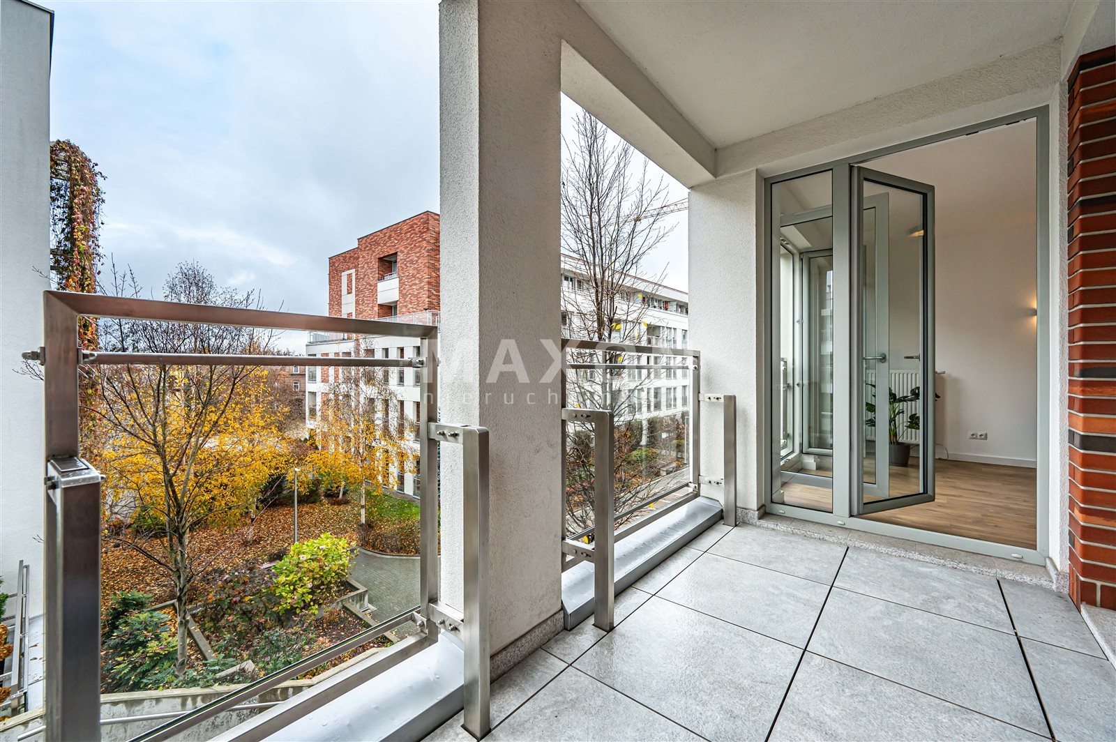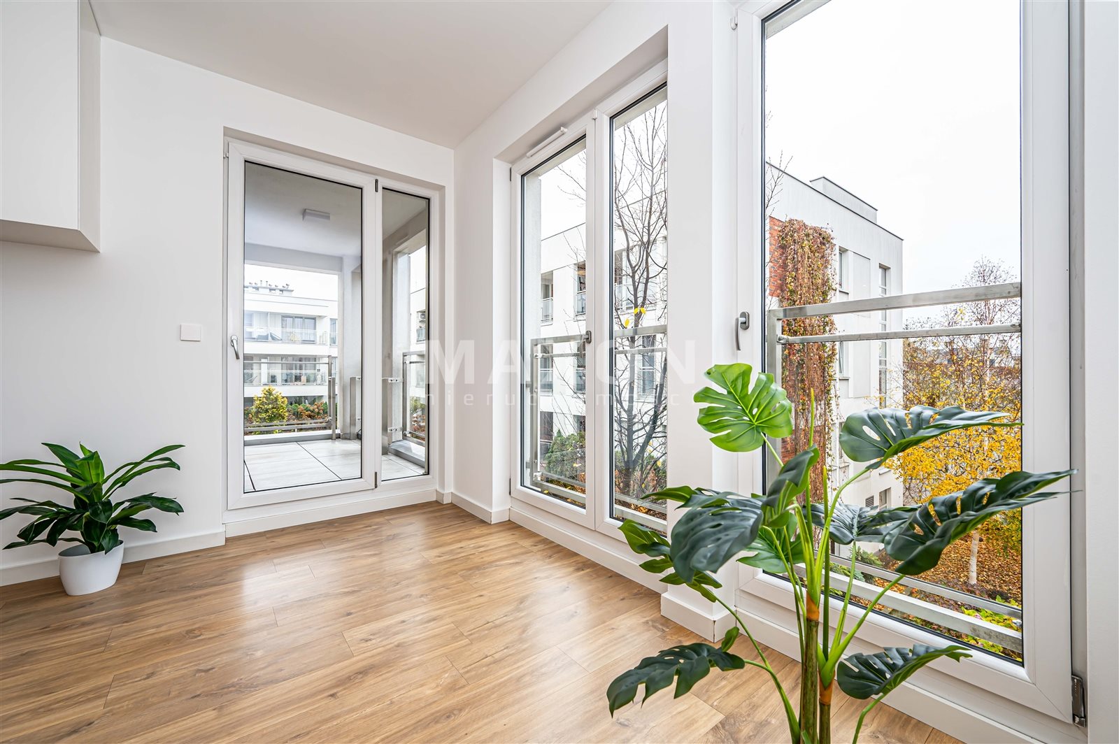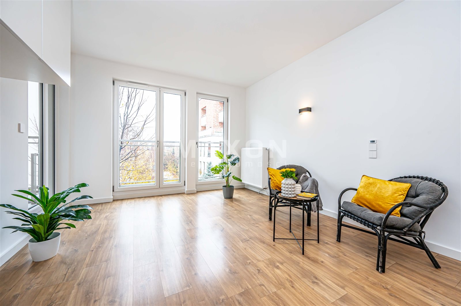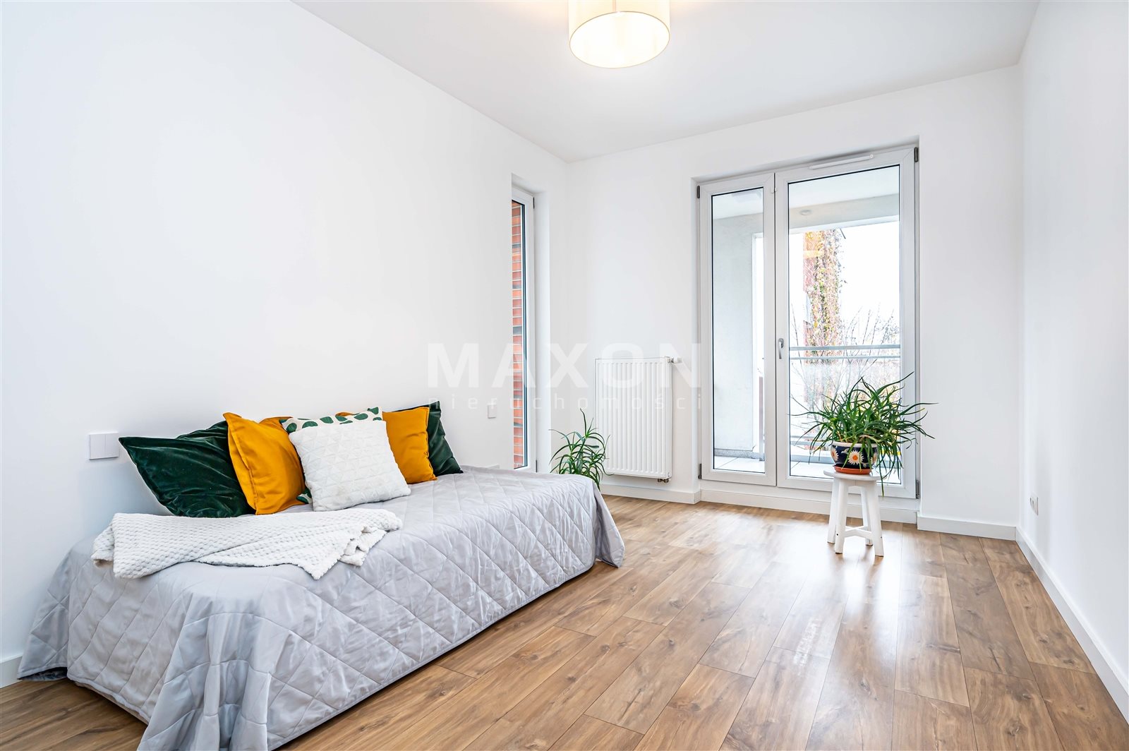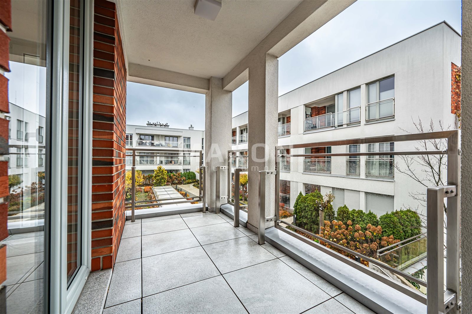 Duży balkon, na który można wejść zarówno z salonu, jak i sypialni – świetne miejsce na poranną kawę lub odpoczynek po pracy.