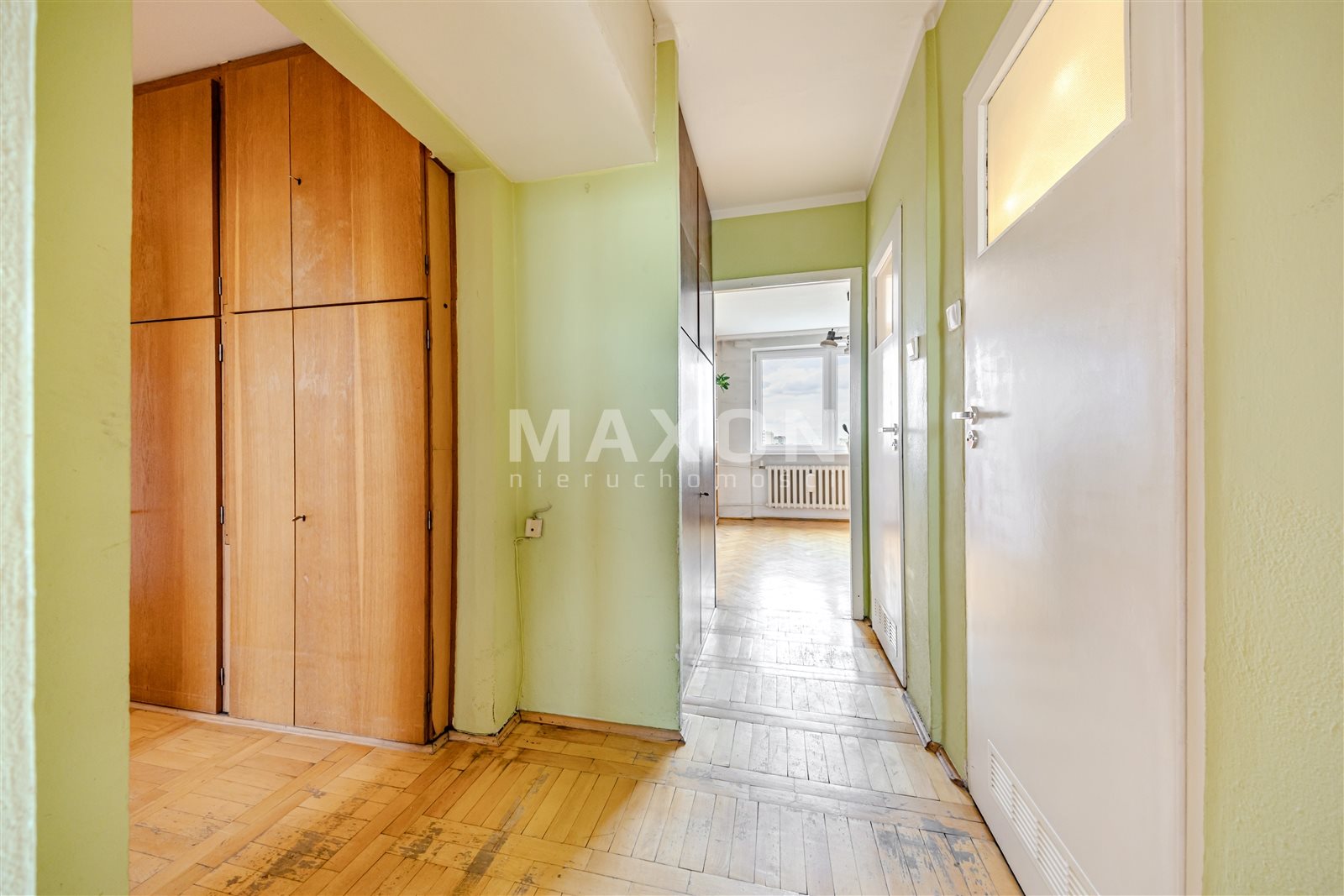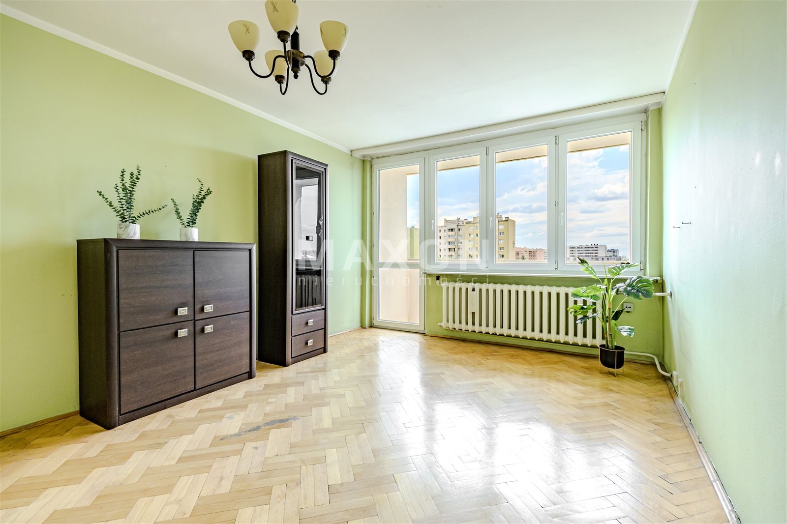 Na podłogach parkiet w dobrym stanie, jeszcze nie cyklinowany, okna PCV.  Mieszkanie dwustronne wschód-zachód, ciche i słoneczne. Mieszkanie znajduje się na 8 piętrze w 12 piętrowym budynku.