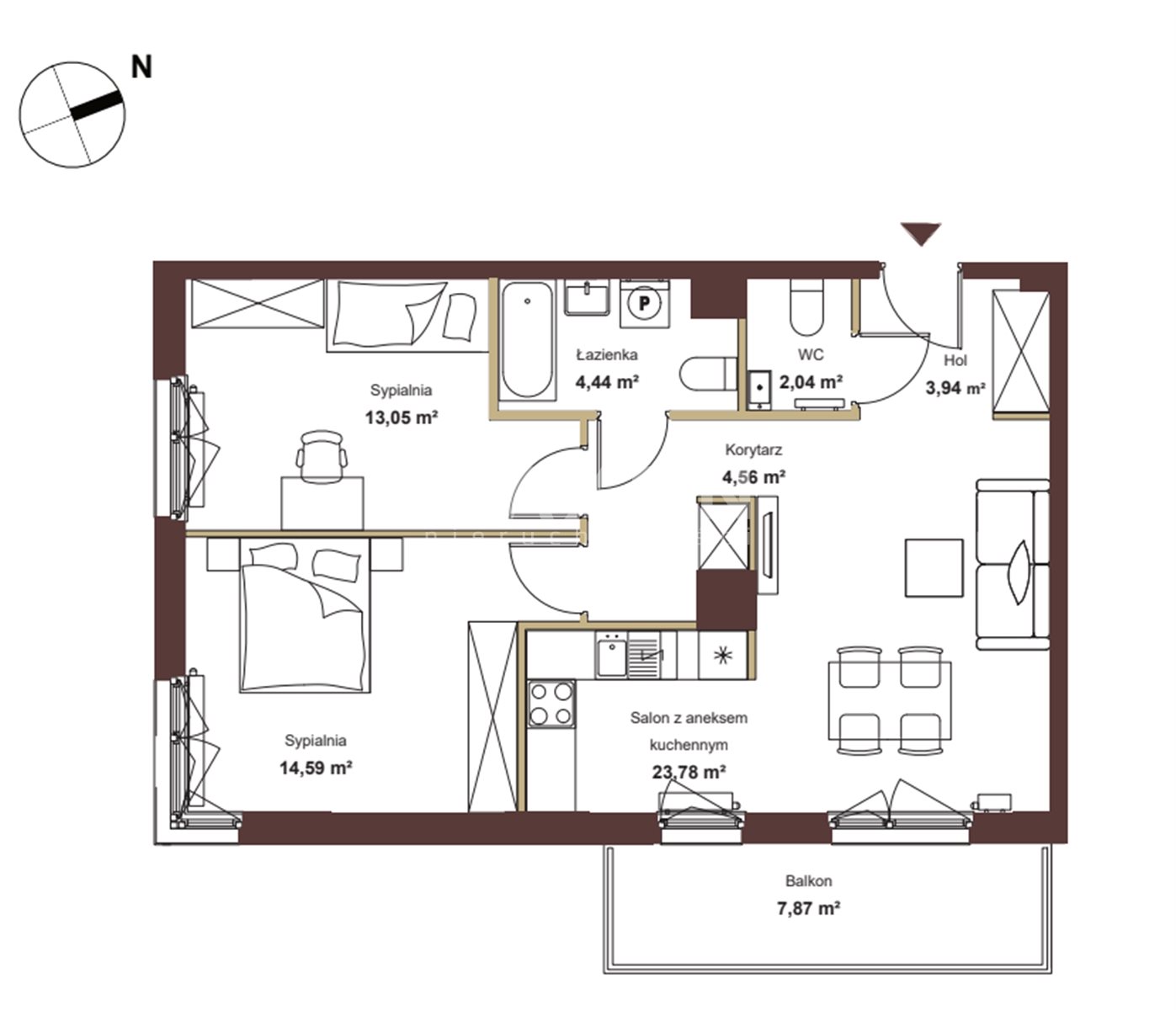 Apartament 2 pok. pow.44m / Rozkładowe i Słoneczne