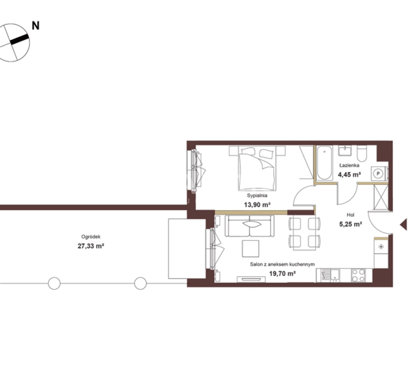 Wyjątkowy 2 pokojowy Apartament o pow. 43,30mkw z Ogrodem o pow. 27,33mkw usytuowany na parterze (Nr13).