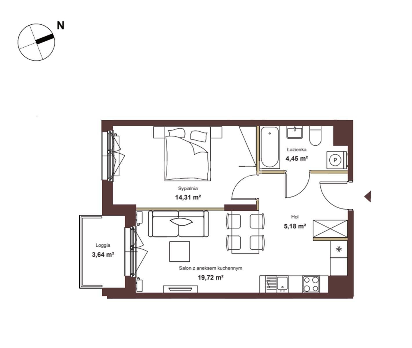 - Salon z aneksem kuchennym i otwartym holem (24,90)