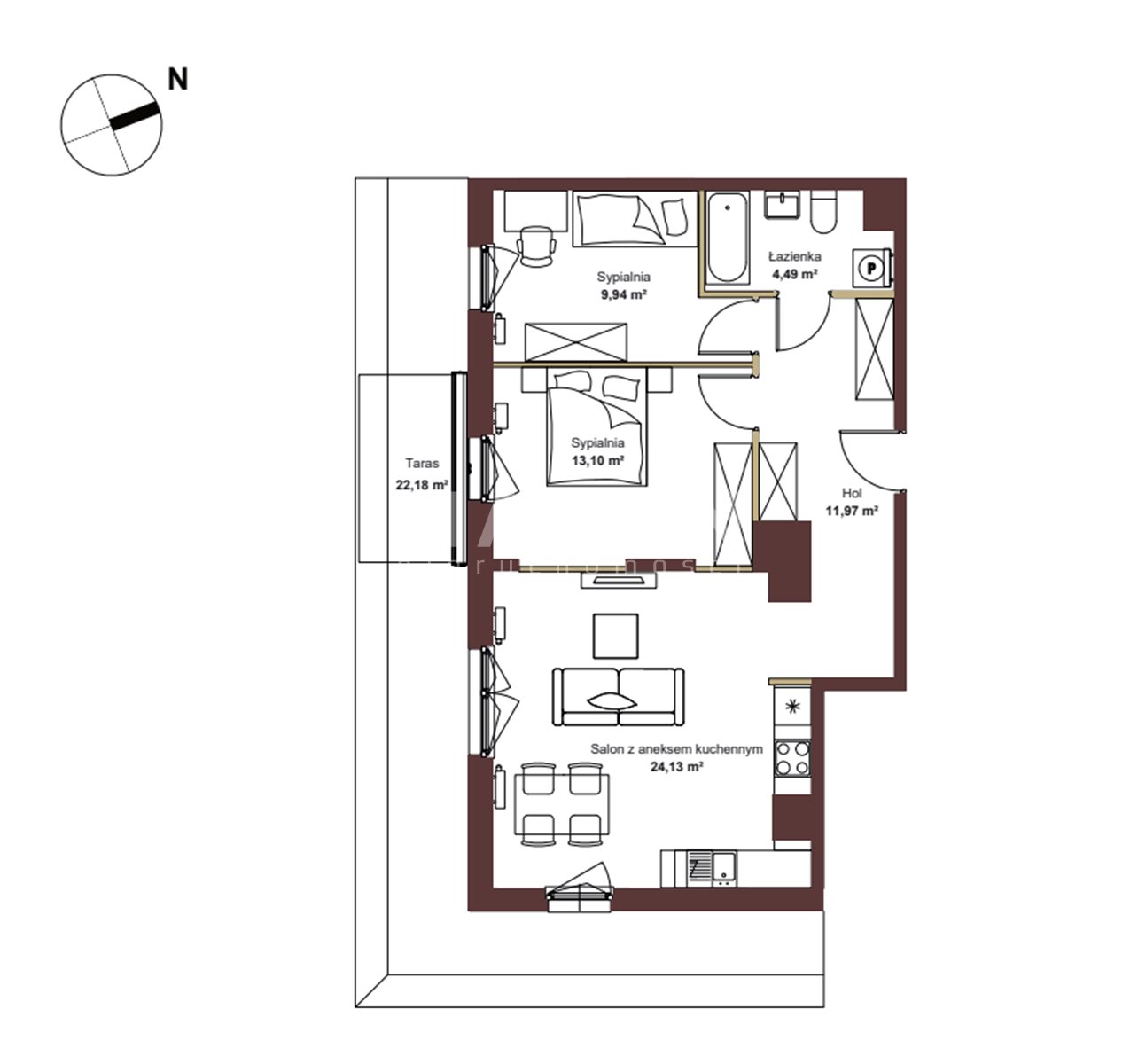 Apartament 2 pok. pow.44m / Rozkładowe i Słoneczne