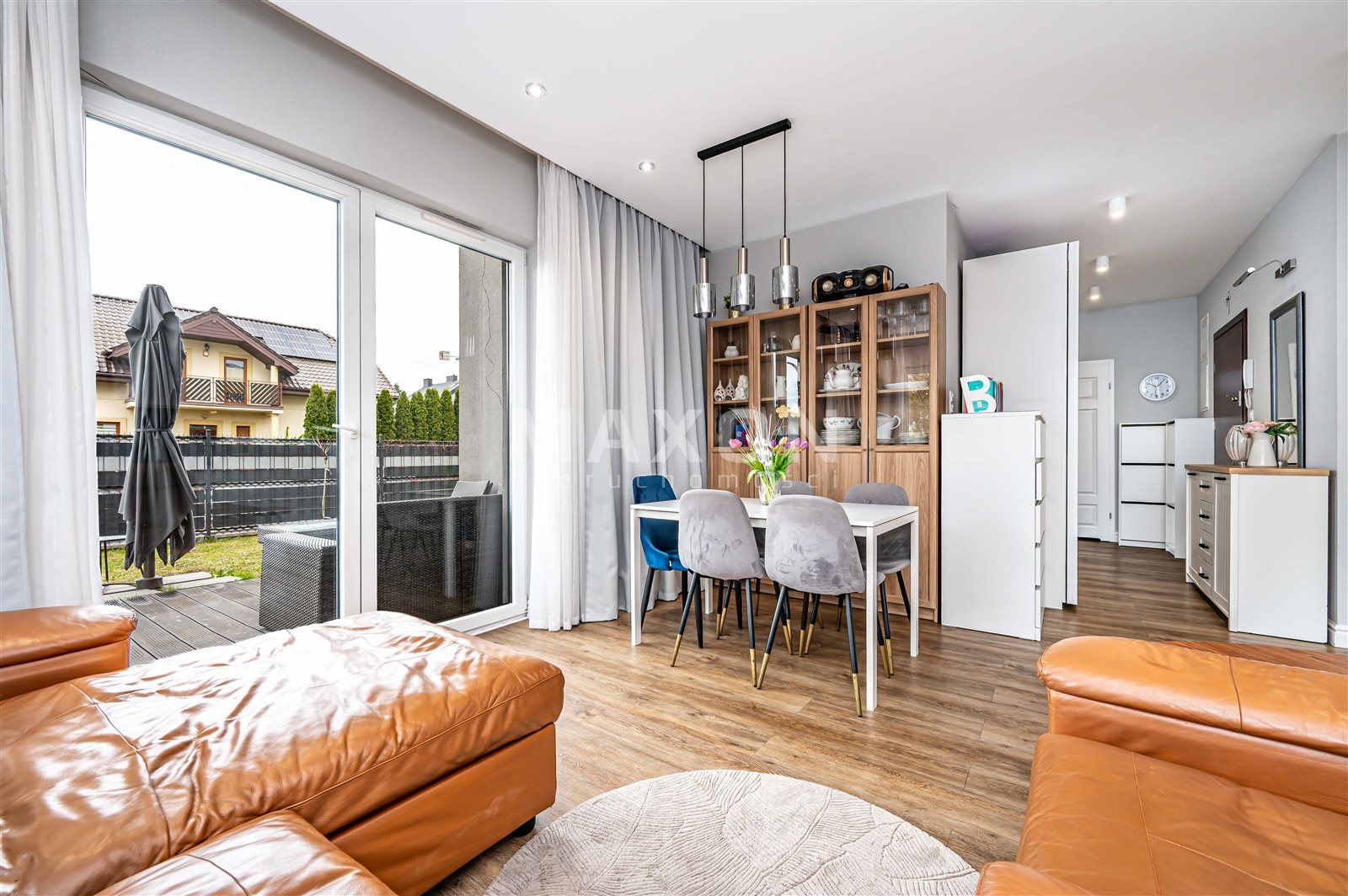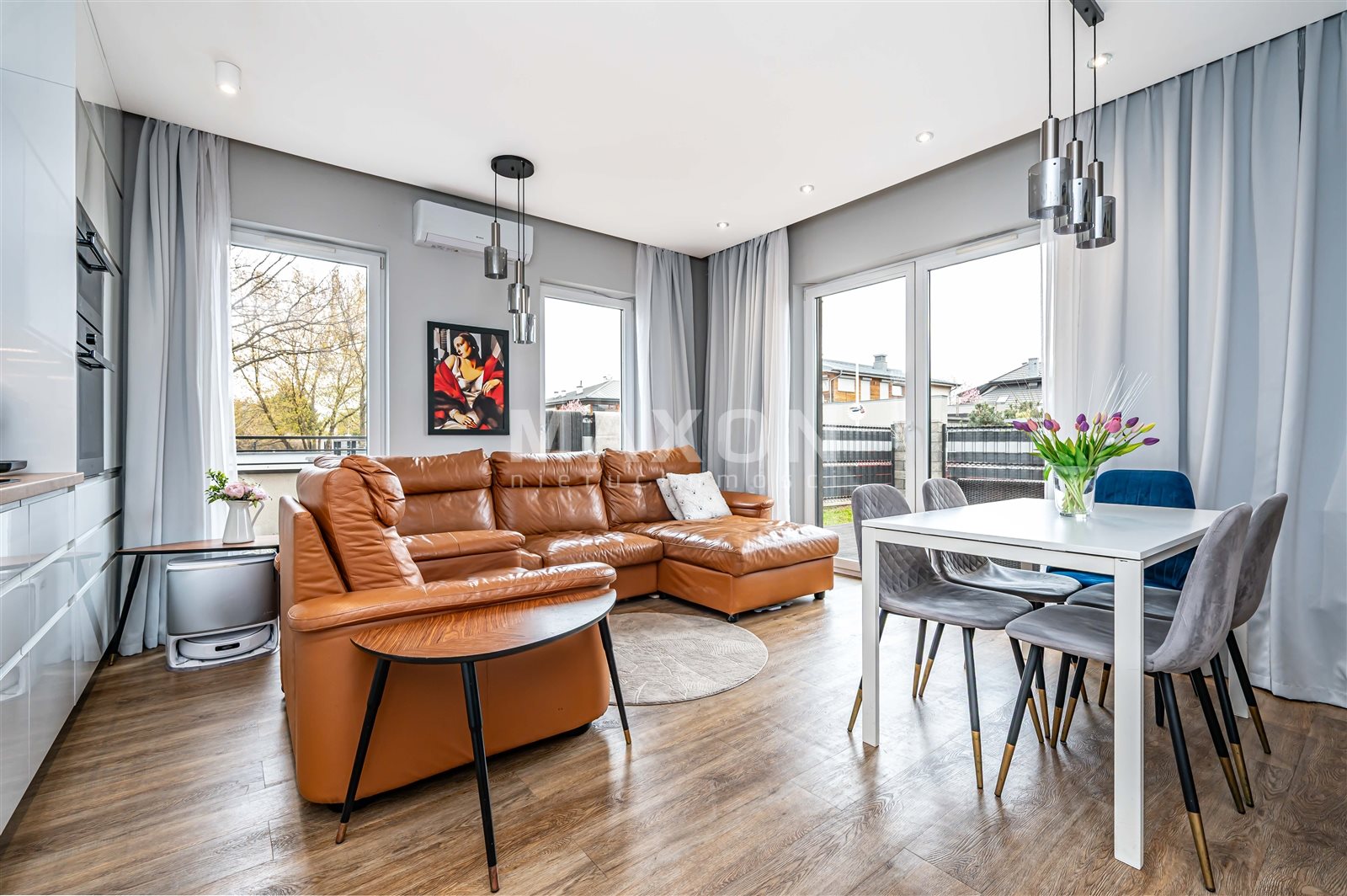 Mieszkanie narożne - z każdego pokoju wyjście do ogródka! W najbliższej okolicy pełna infrastruktura; żłobki, przedszkola, place zabaw, sklepy. Kilka minut komunikacją lub autem do Galerii Północnej. Tereny zielone, przy Wiśle, na wyciągnięcie ręki.