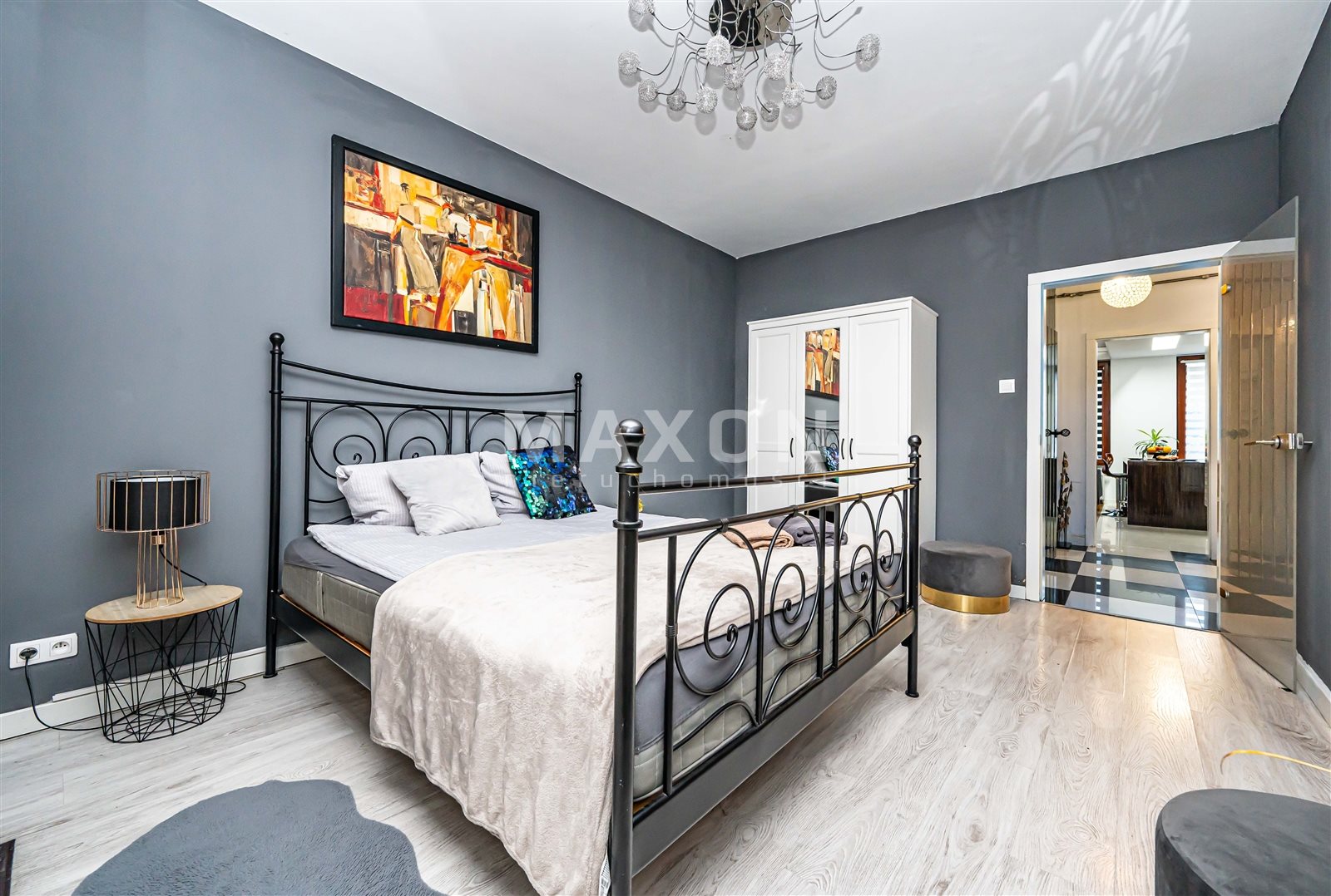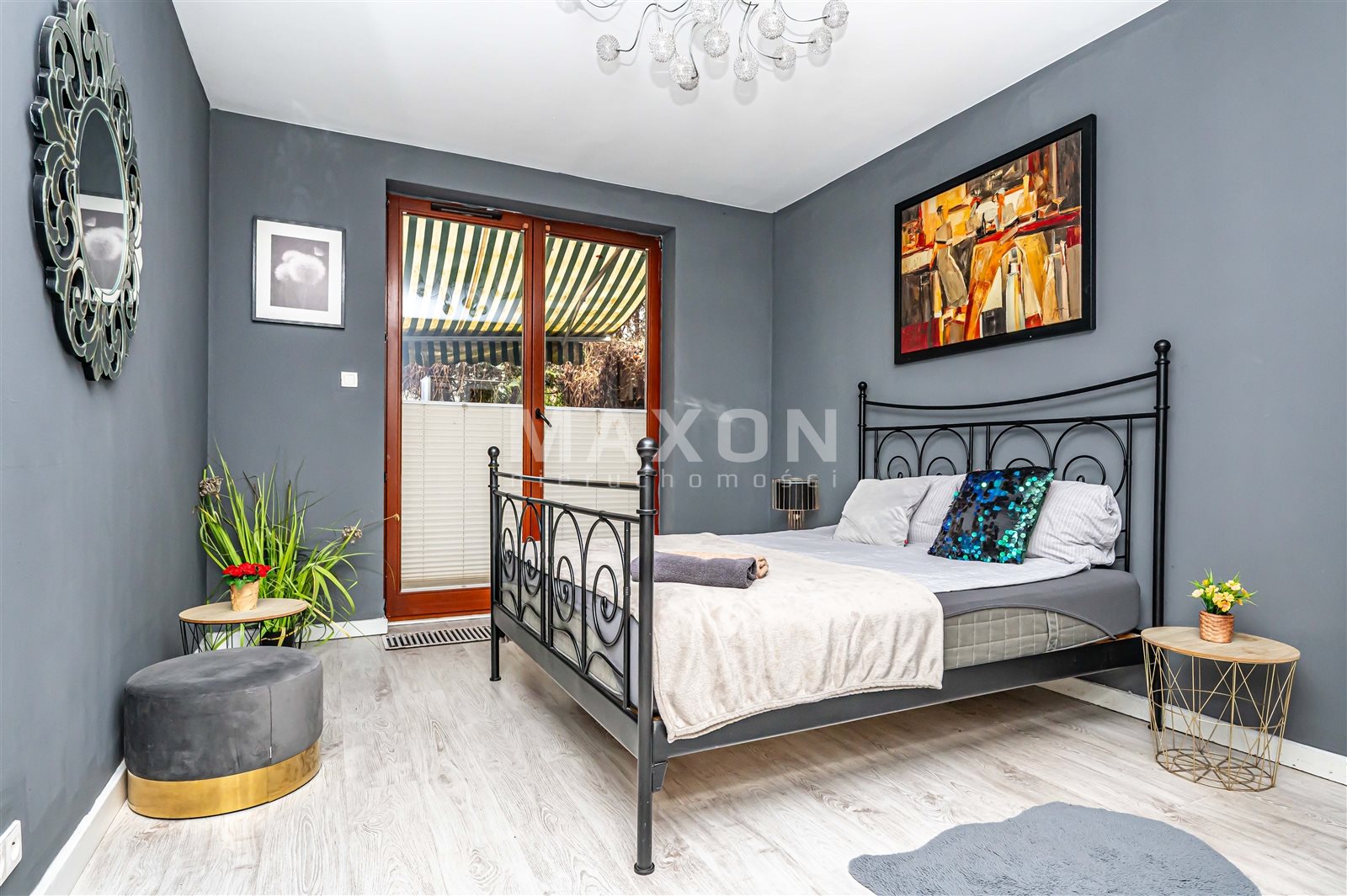 Sypialnia ma kształt kwadratu, co czyni ją wyjątkowo ustawną i pozwala na swobodną aranżację wnętrza. Z sypialni jest wyjście do ogródka, gdzie w słoneczne i ciepłe dni można zjeść śniadanie i napić się kawy.