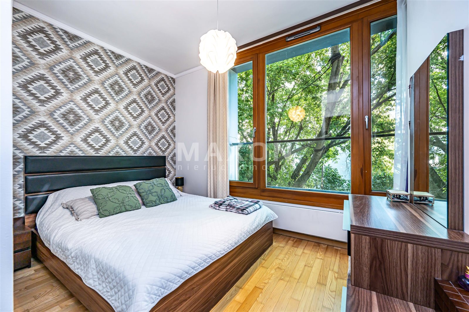 Mieszkanie o funkcjonalnym rozkładzie, wykończone bardzo dobrymi materiałami, podłogi drewniane (jesion), gres wysokiej klasy. Drzwi wewnętrzne drewniane.