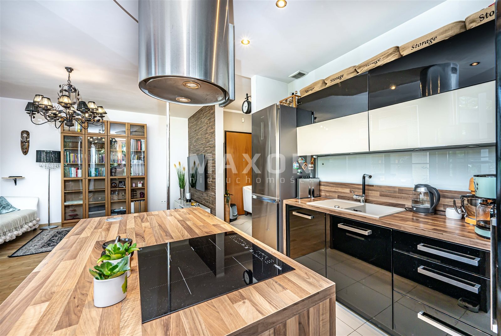Duży salon z kuchnią i loggią tworzy serce domu, a trzy dodatkowe pokoje dają wiele możliwości aranżacyjnych.