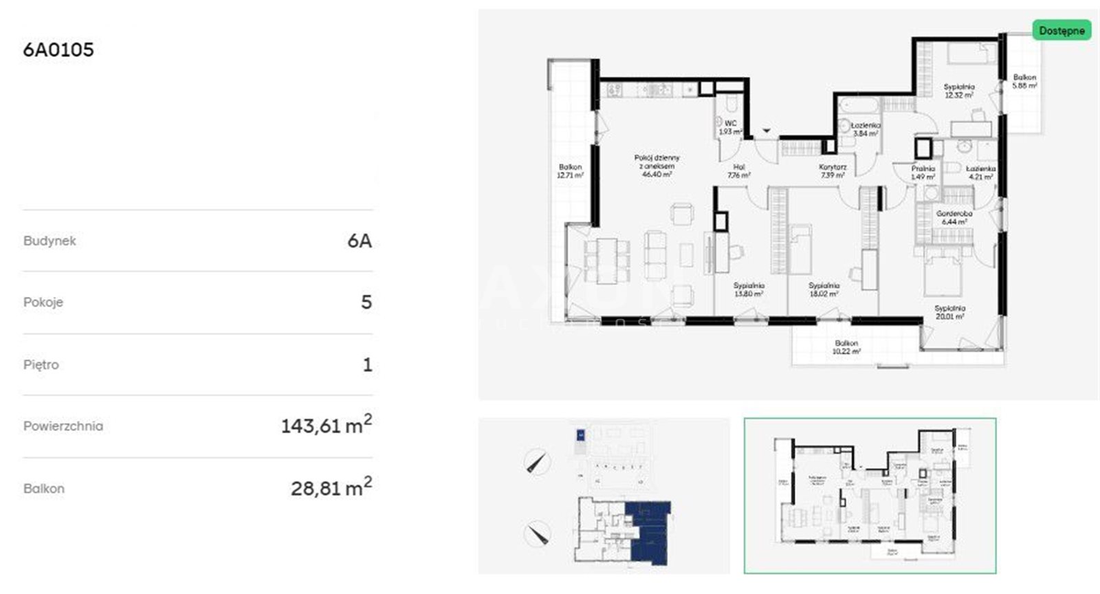 Mieszkanie na sprzedaż - 143,61 m2, 5 pokoi