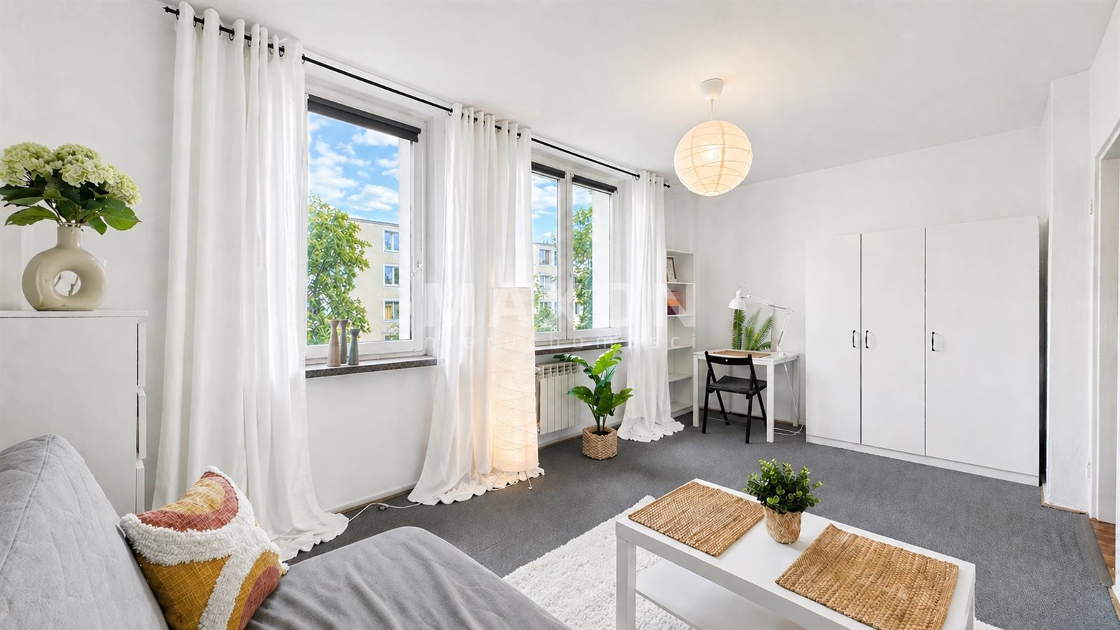 - Dwa duże okna – wnętrze jest świetnie nasłonecznione i pełne pozytywnej energii