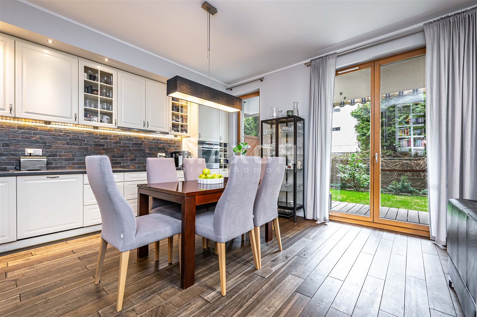 Dużym atutem nieruchomości jest prywatny ogródek, który w sezonie letnim staje się naturalnym przedłużeniem salonu.