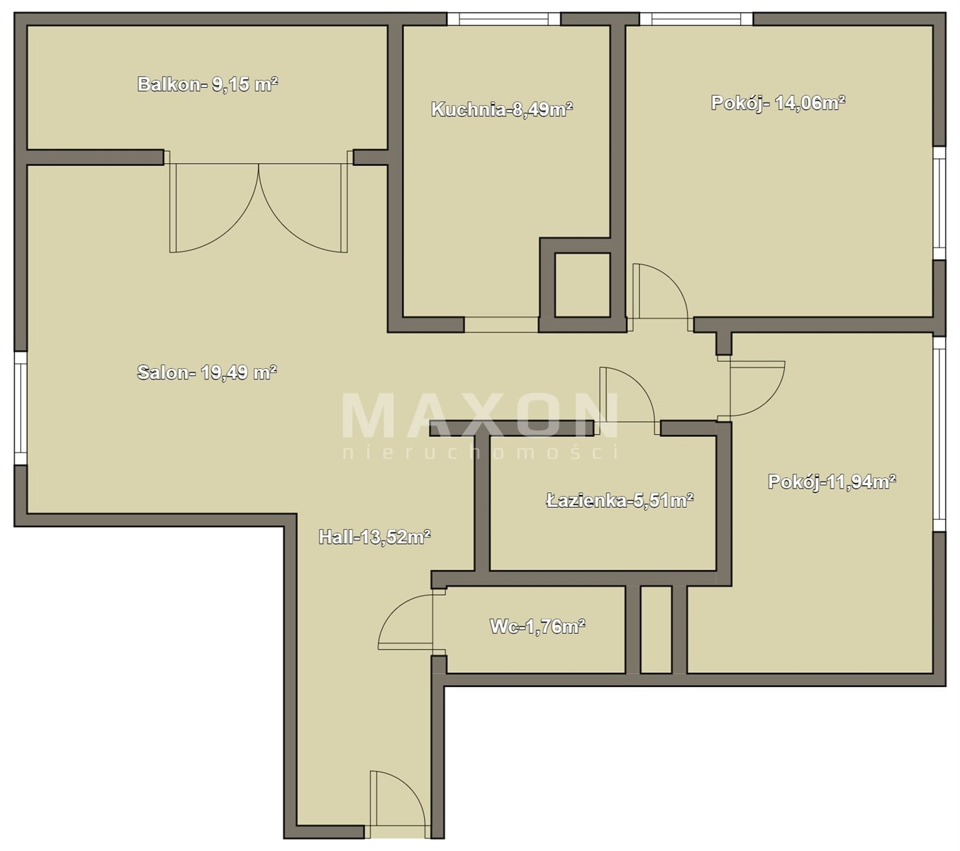 - przestronny salon- 19,49 mkw z wyjściem na balkon o powierzchni 9,15 mkw