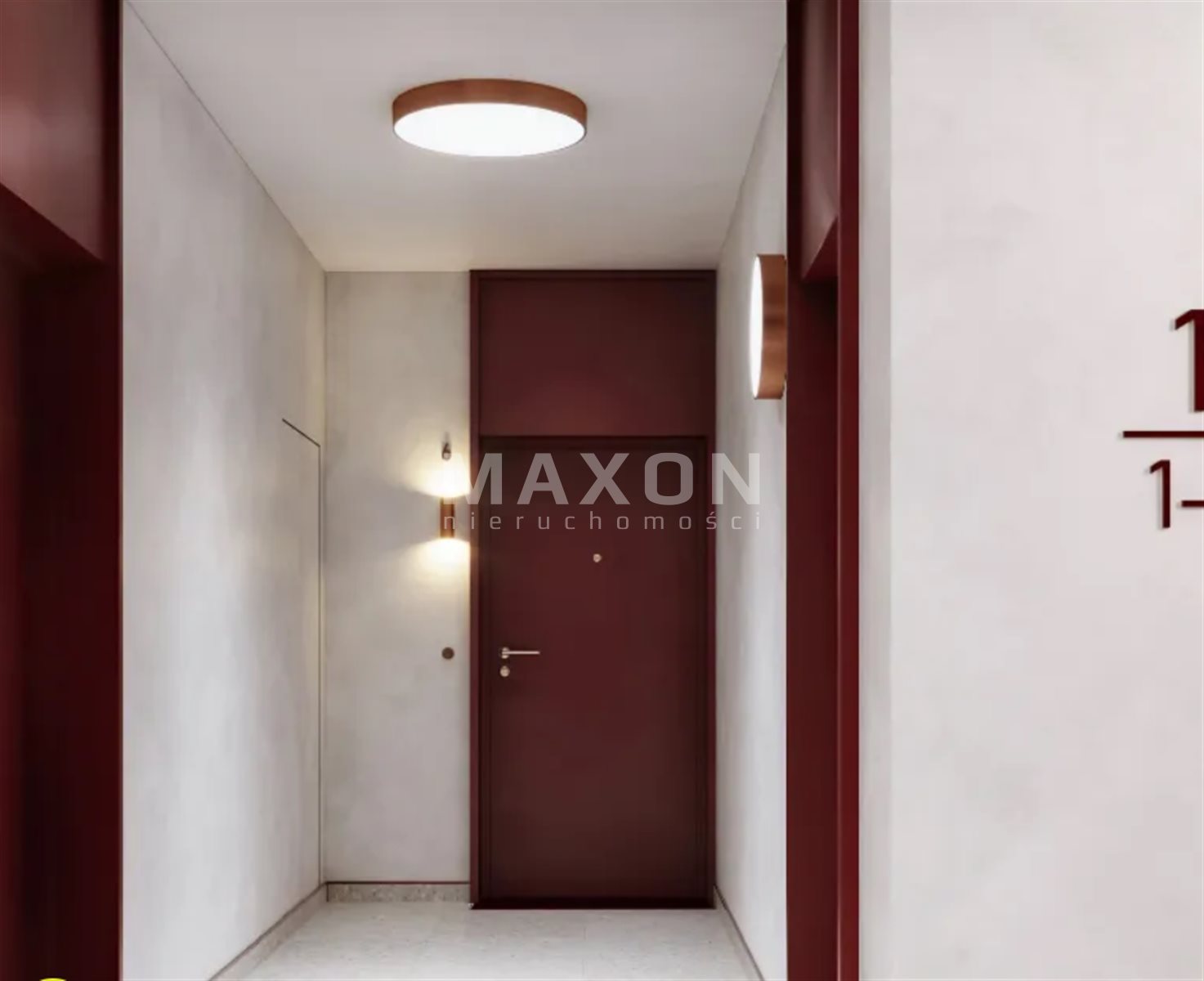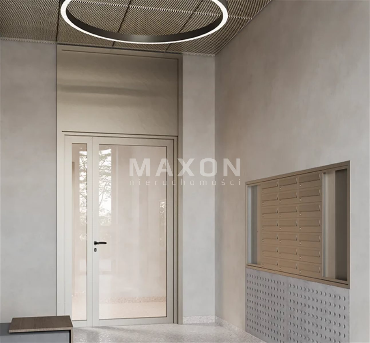 W hollach wejściowych dekoracyjne farby strukturalne, podłogi wykończone płytkami w stylu terrazzo i stonowane oświetlenie tworzą elegancką strefę wejścia do każdego z mieszkań.