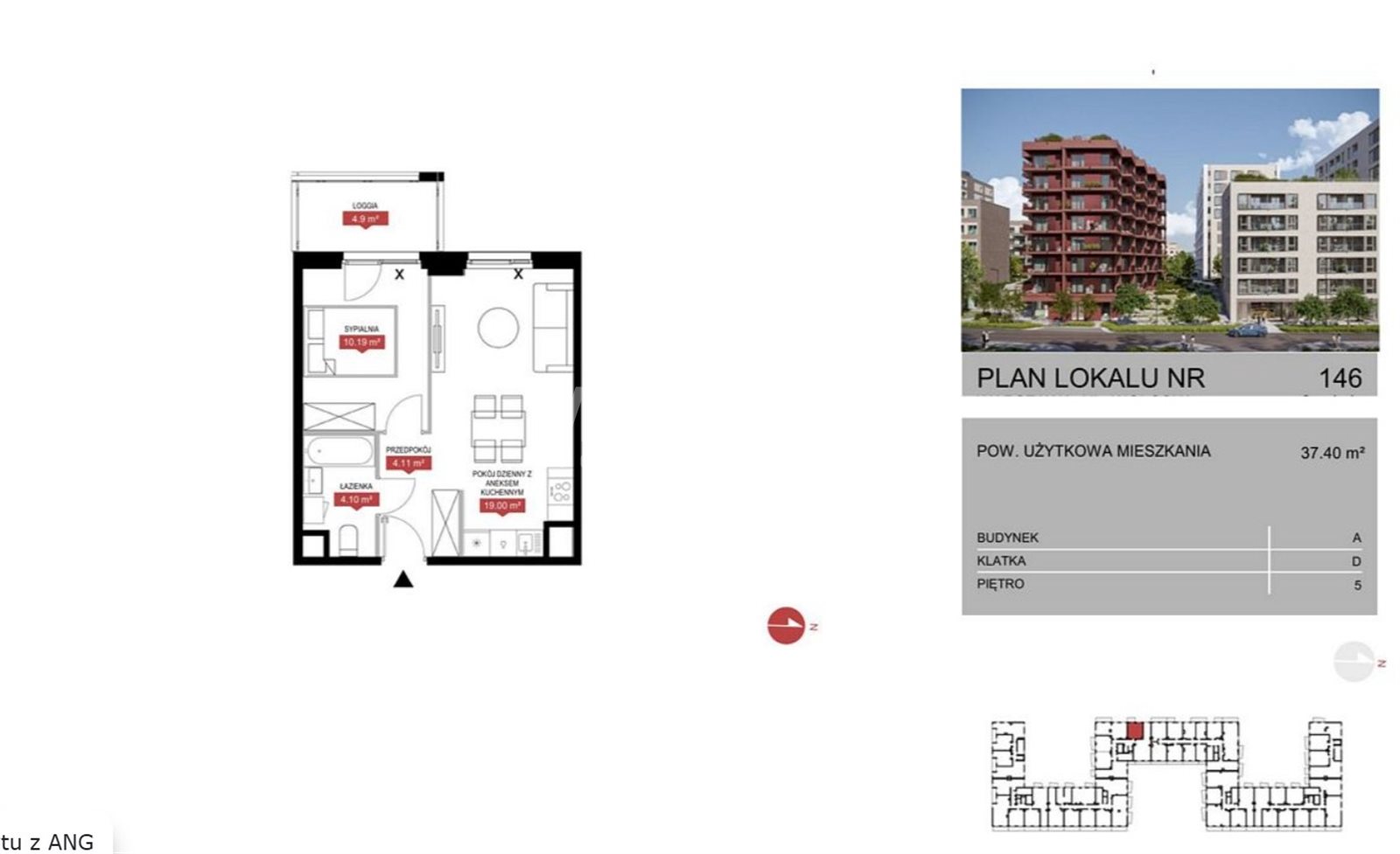 Mieszkanie na sprzedaż - 37,40 m2, 2 pokoje