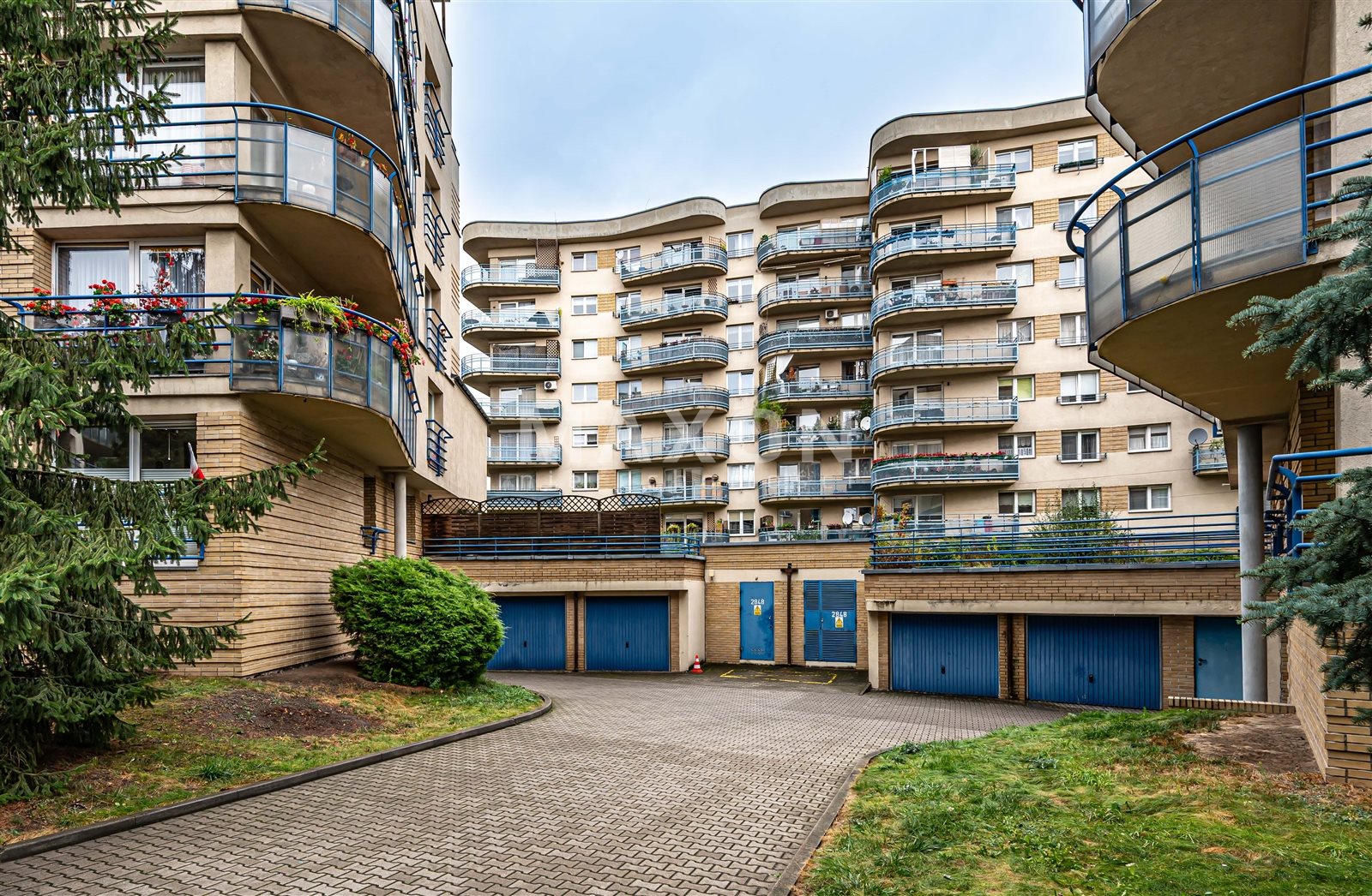 Obszerne, zamykane boksy garażowe usytuowane tuż obok bloku.
