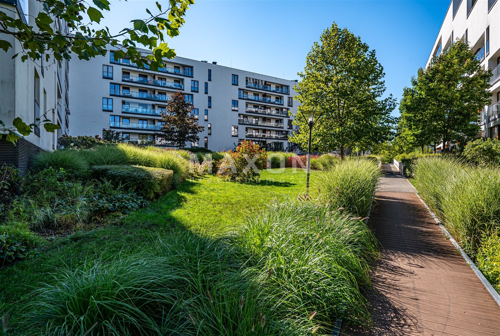 Budynek to 6-piętrowy apartamentowiec z całodobową ochroną, z licznymi terenami zielonymi.