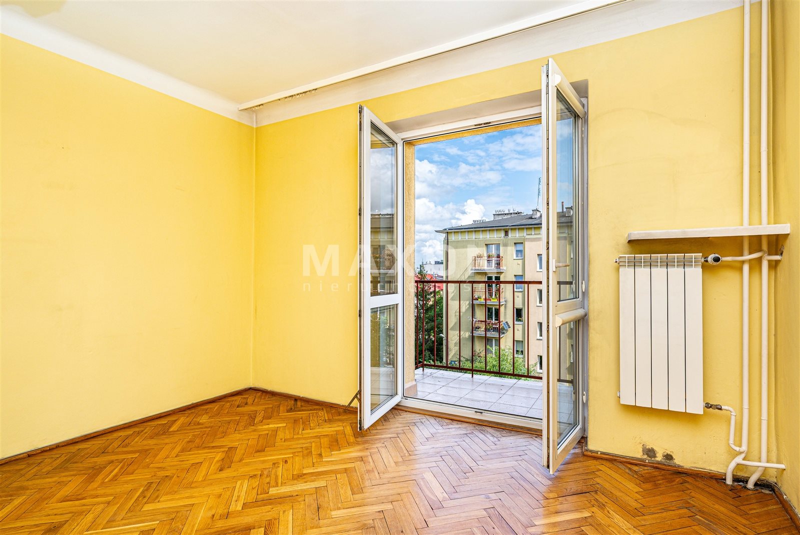 Dużym atutem jest oryginalny drewniany parkiet w dobrym stanie, który po renowacji będzie upiększał mieszkanie.